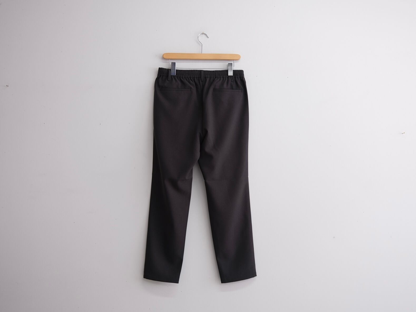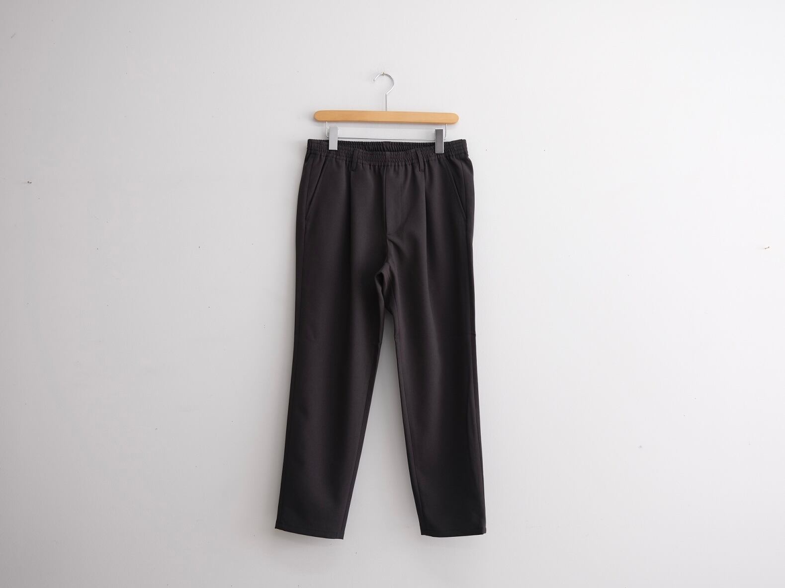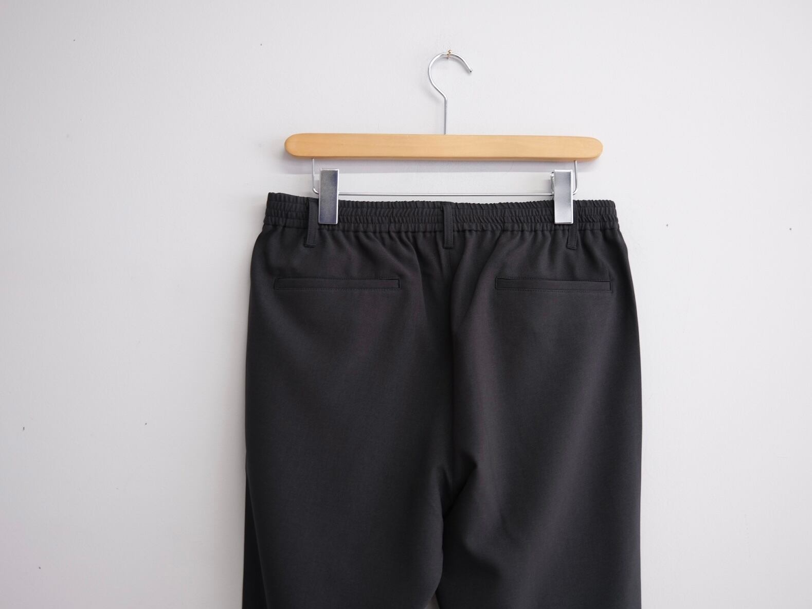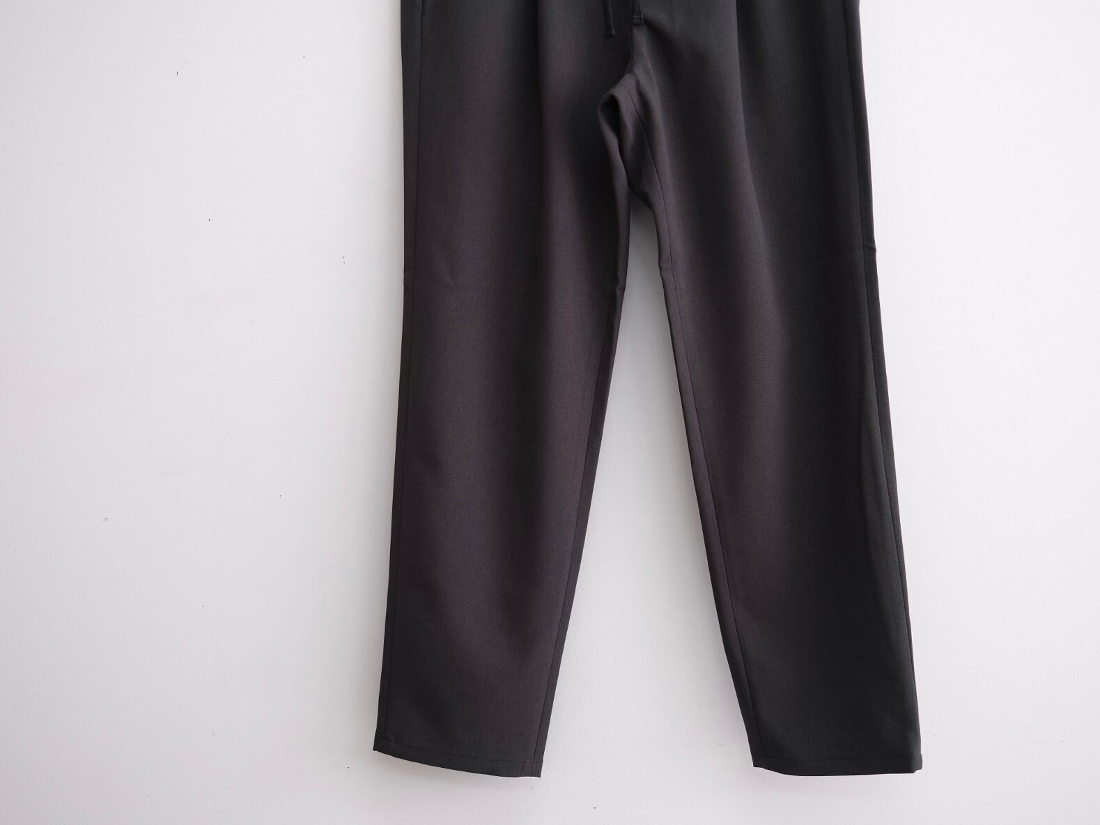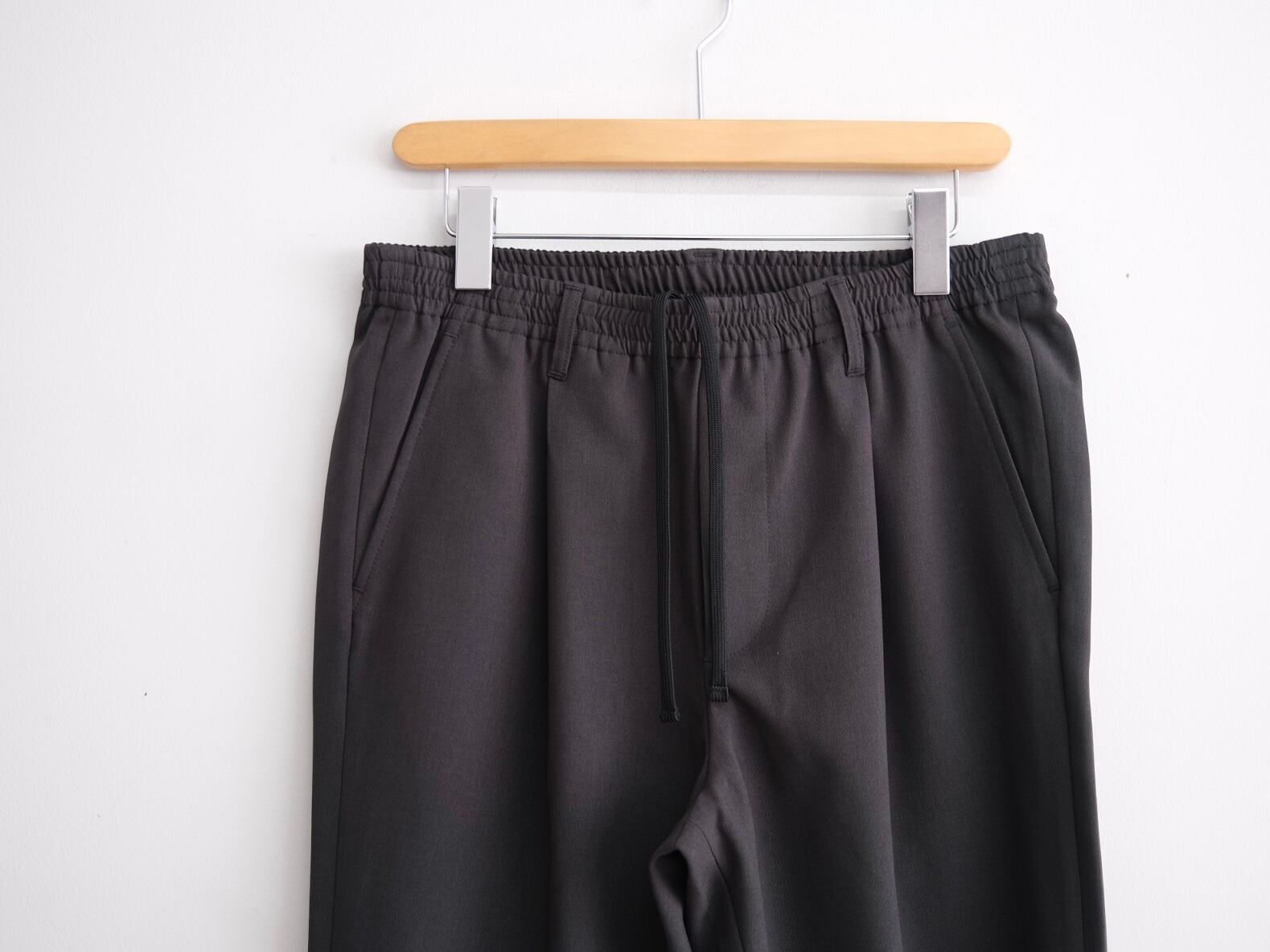 定番のSHARI PANTSをベースに強撚ウールのようなドライタッチ感のあるポリエステル生地で制作したイージートラウザーズ。