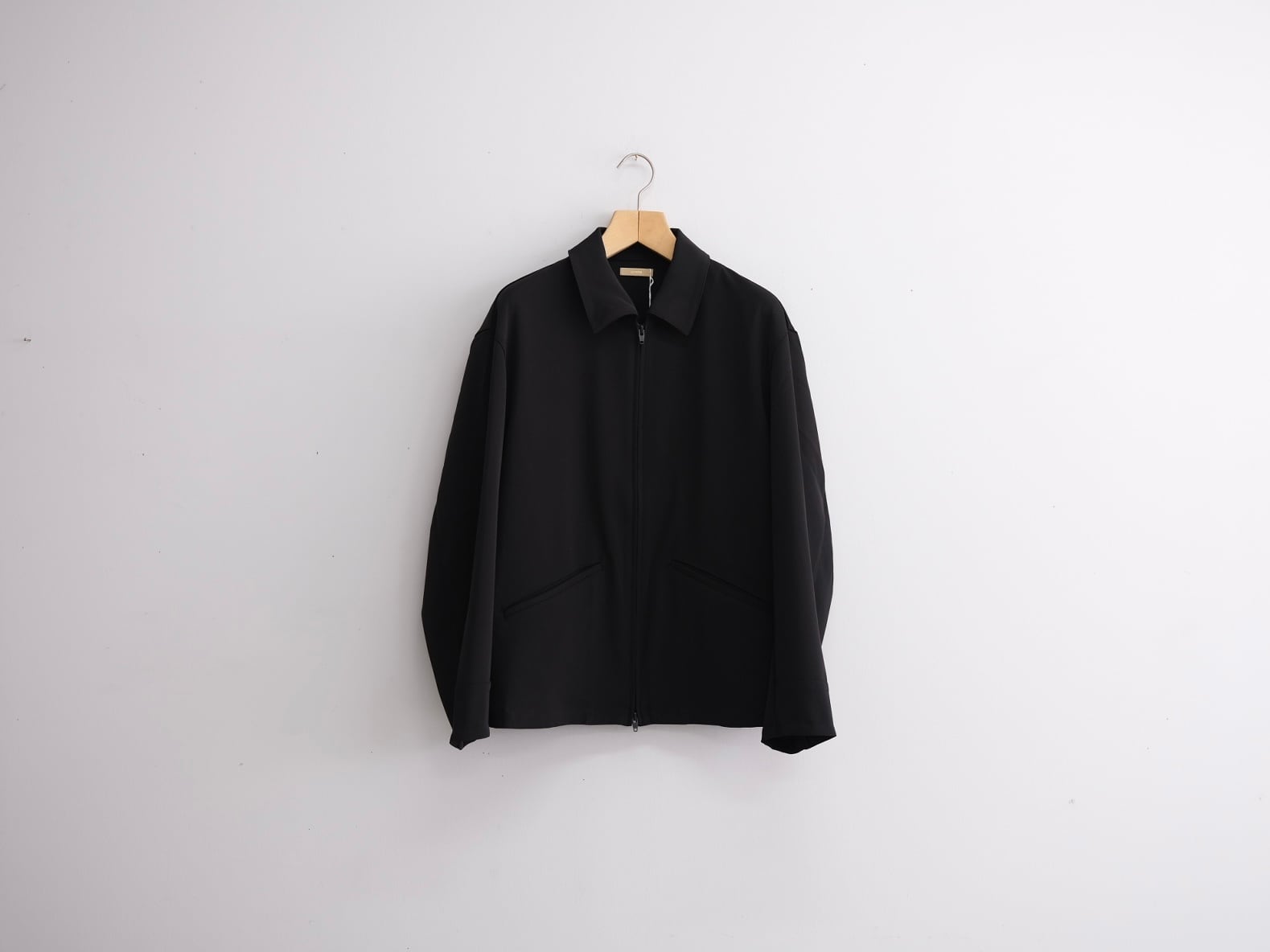 ポリエステルの強撚糸を使ったストレッチツイルジョーゼット生地を使用したジップジャケット。