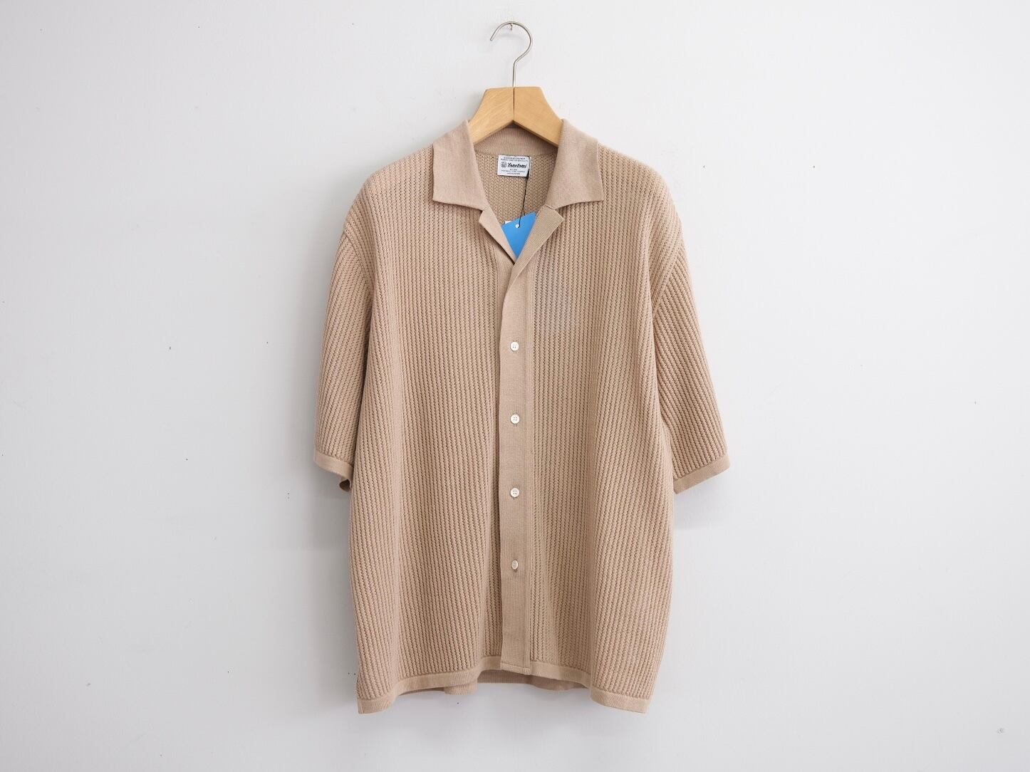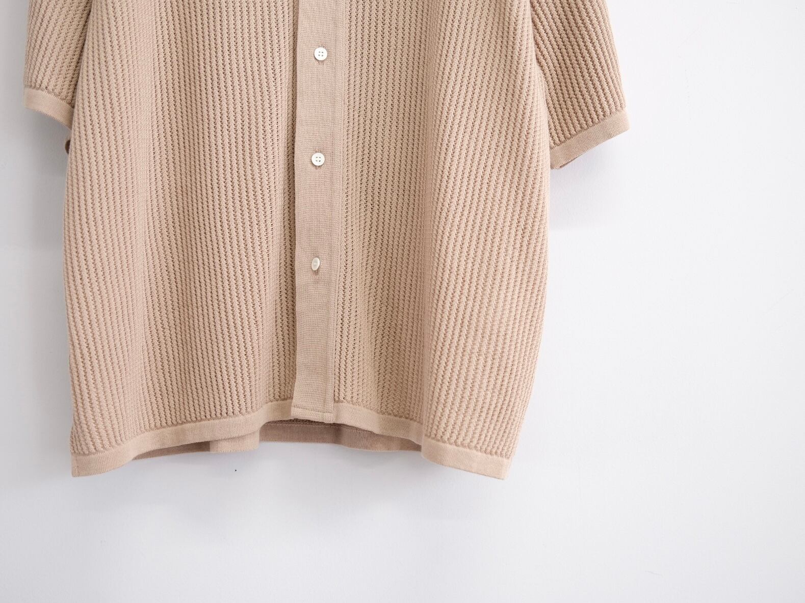 程よい透け感が涼しげなニットシャツ。 毛羽立ちを抑えたコンパクトスピン コットン糸を使用することで、適度にハリのあるさらっとした風合いを実現しています。