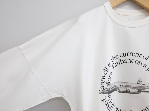 O - ® 定番のコットン100%オリジナルファブリックを用いたドルマンスリーブのクルーネックカットソー、プリントバージョンです。