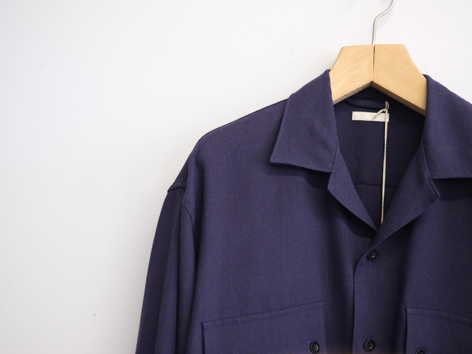 ミリタリーウェアから引用した大きめのフラップポケットが特徴的なオープンカラー シャツ。