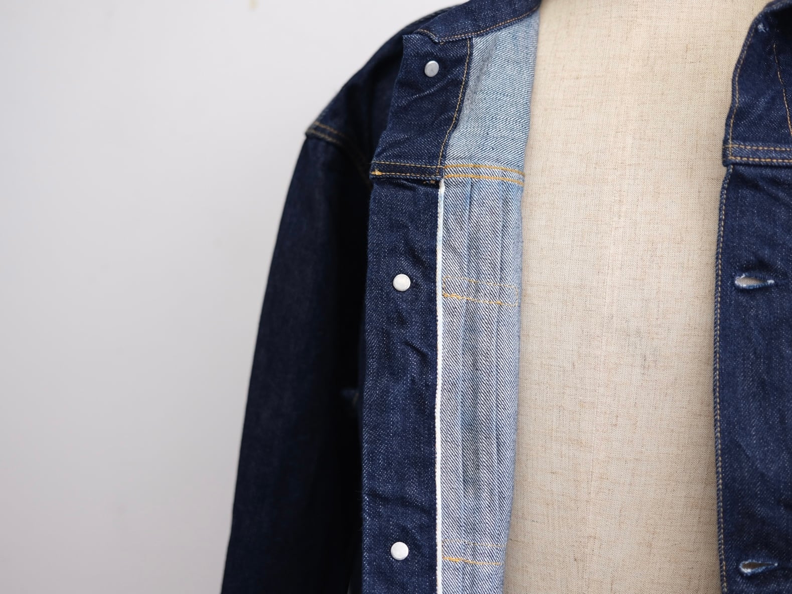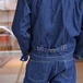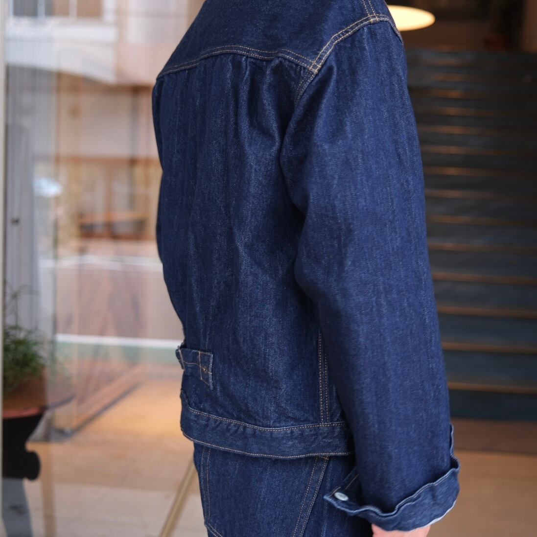 CIOTAの定番デニムジャケットがフルリニューアルしました。フラップ付きのシングルポケット、針無しのバックシンチ、フロントプリーツといったディテールは、1950年代のヴィンテージからサンプリング。着やすさを考慮し、ヴィンテージモデルよりも、やや着丈を長く、アームホールを広く設定。さらに、これまでよりも身幅をワイドにし、よりボクシーなシルエットに変更しました。ブルーデニムは、旧式力織機(シャトル織機)で織り上げた13.5ozの本藍セルビッチデニム。タテ糸に本藍によるロープ染色したムラ糸、ヨコ糸に超長繊細綿・スビンコットンを使用しています。また、のり抜き、防縮、斜行止め、毛焼きなどをしていない“生機”に変更。縮みやよじれが起こりますが、デニム本来の質感、経年による表情の変化を楽しめます。