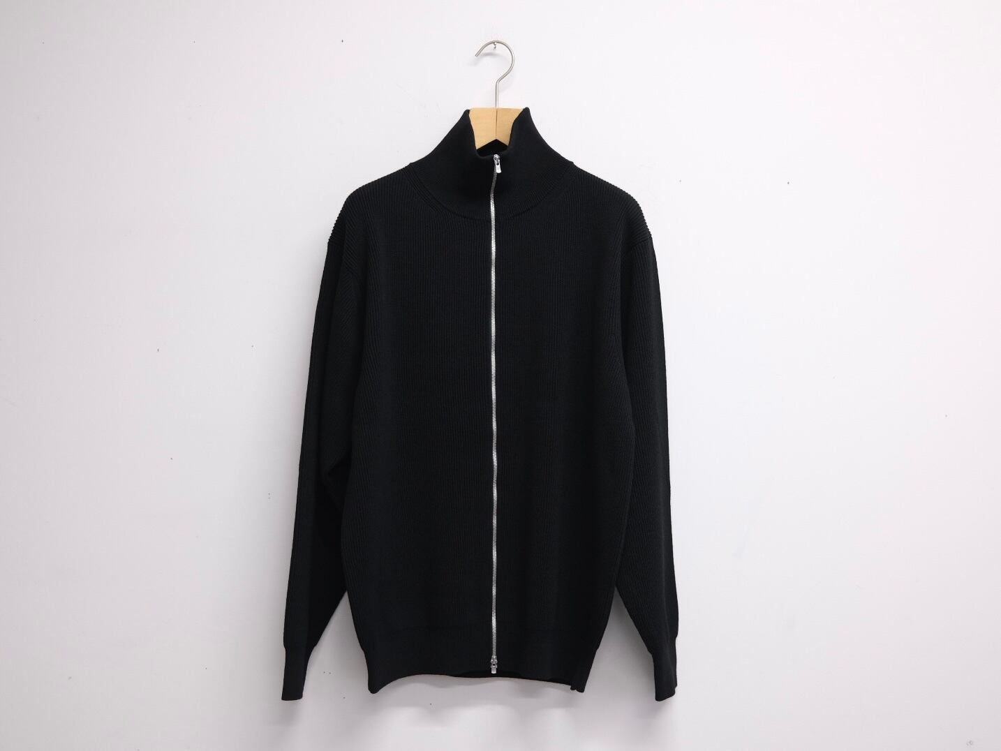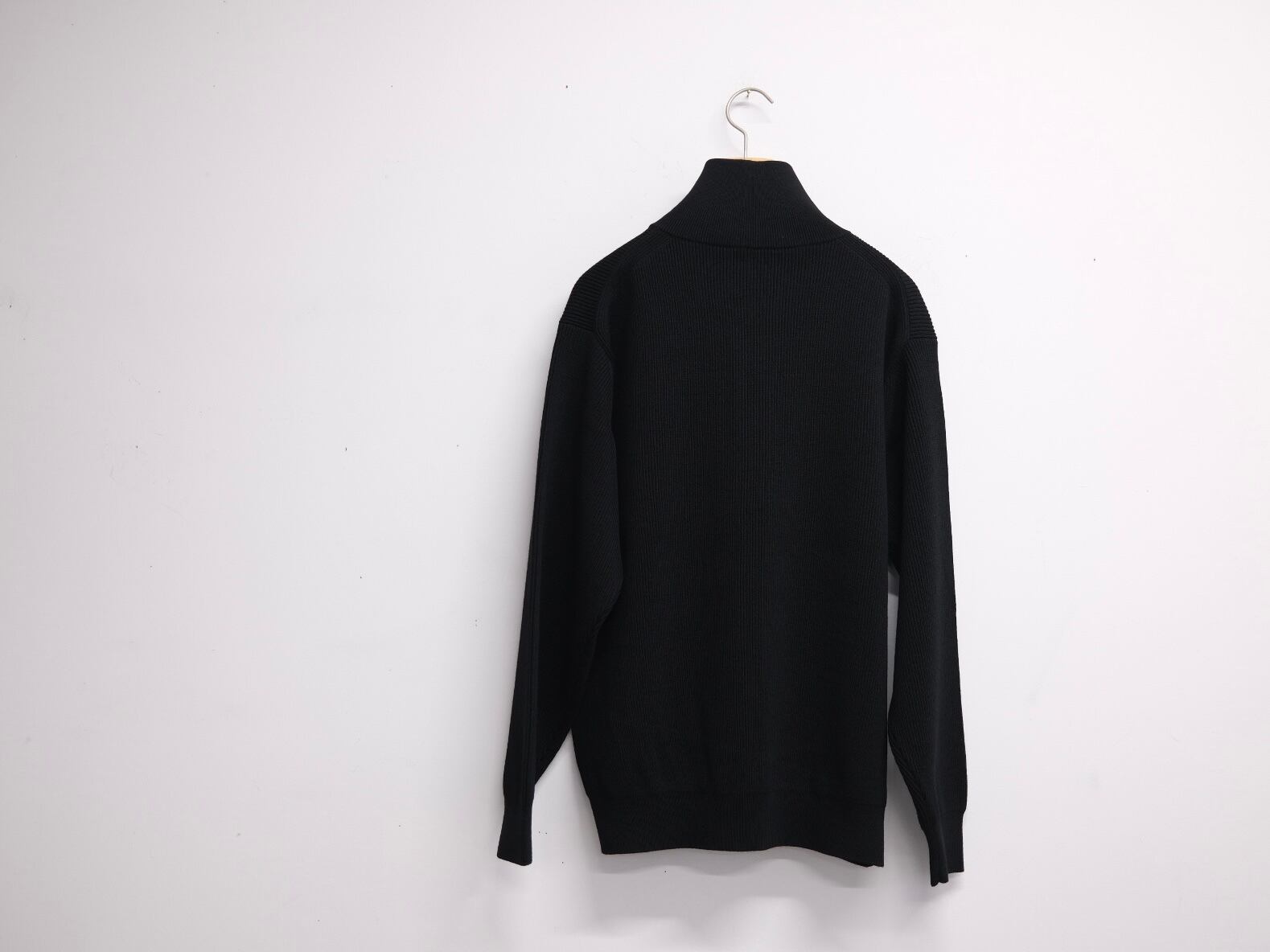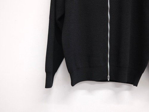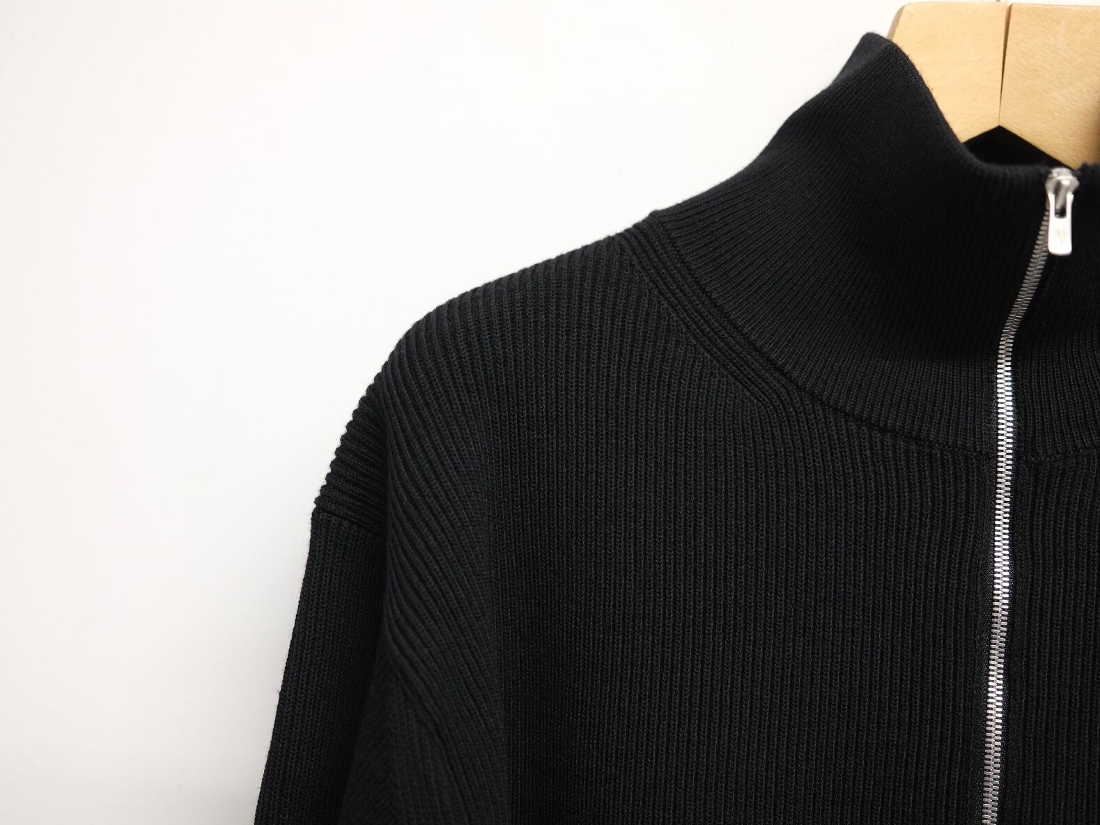 19.5マイクロンのメリノウールに超強撚を施したドライバーズニットです。細かな両畦編み組織で構成されたミニマムなデザインが特徴です。