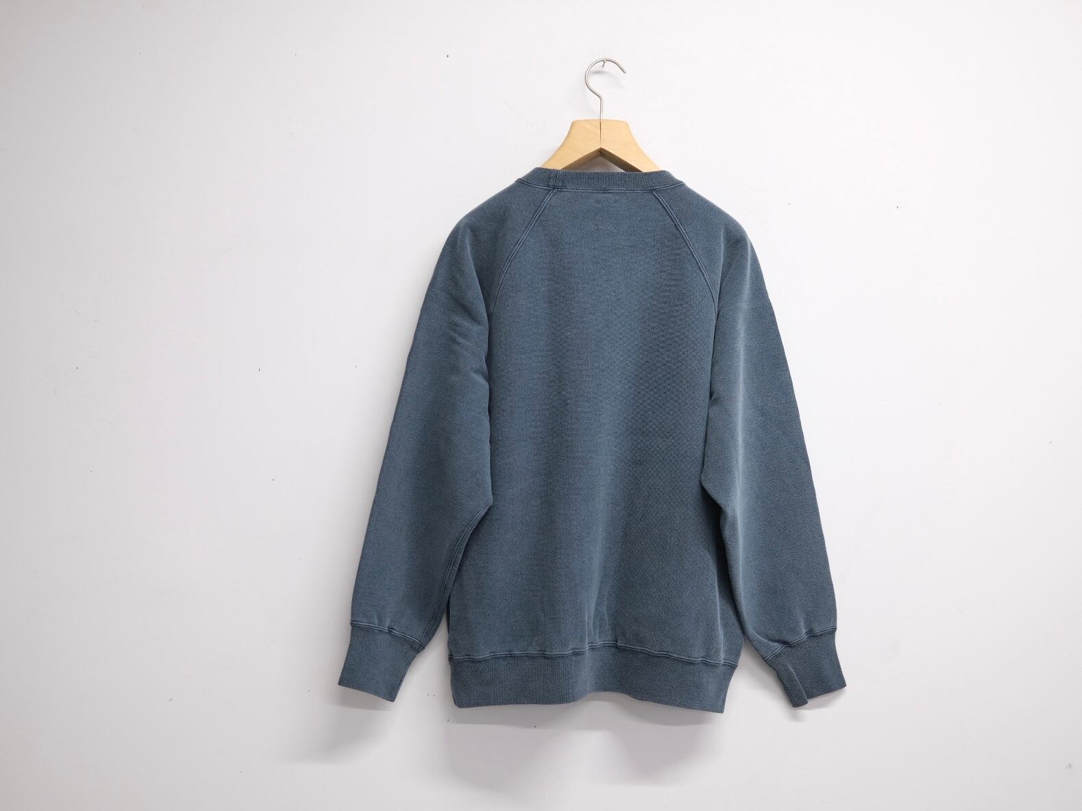 ジャンベルカという古い編機を使用しゆっくりと編み立てる事により、ふっくらとした肉感の風合いと特有のキックバック性という特徴を持つ裏毛生地を使ったシリーズ。表に空気紡績糸を使用し軽さとタフさを持たせ、裏に対極のソフトで肌触りの良い糸を使用しました。今回は表にメランジカラーの糸を使う事でより奥行きのある表情を味わっていただける商品となっております。製品で後染めの後に色を落としてフェード感を出しています ※色や風合いに個体差が生じます