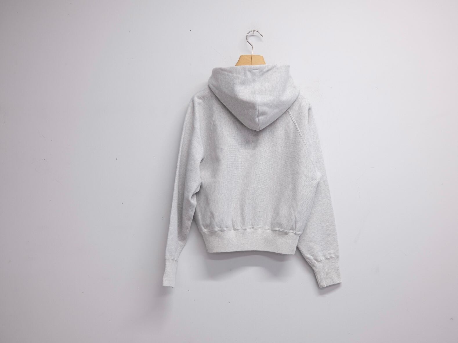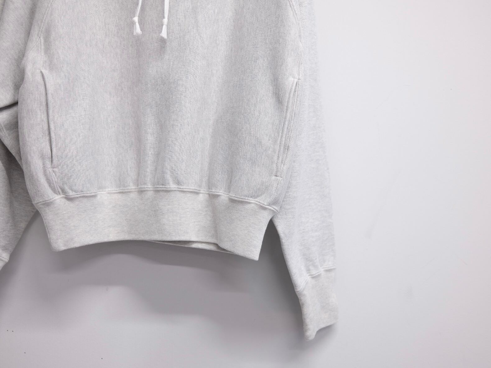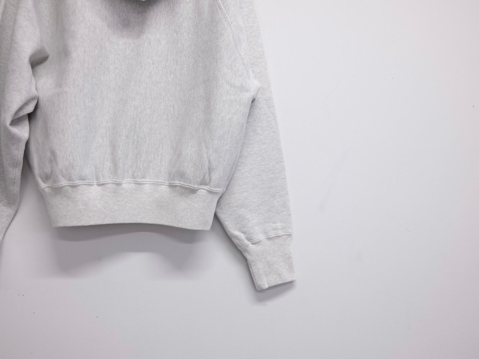 ジャンベルカという古い編機を使用しゆっくりと編み立てる事により、ふっくらとした肉感の風合いと特有のキックバック性という特徴を持つ裏毛生地を使ったシリーズ。表に空気紡績糸を使用し軽さとタフさを持たせ、裏には対極のソフトで肌触りの良い糸を使用しました。今回は表にメランジカラーの糸を使う事でより奥行きのある表情を味わっていただける商品となっております。