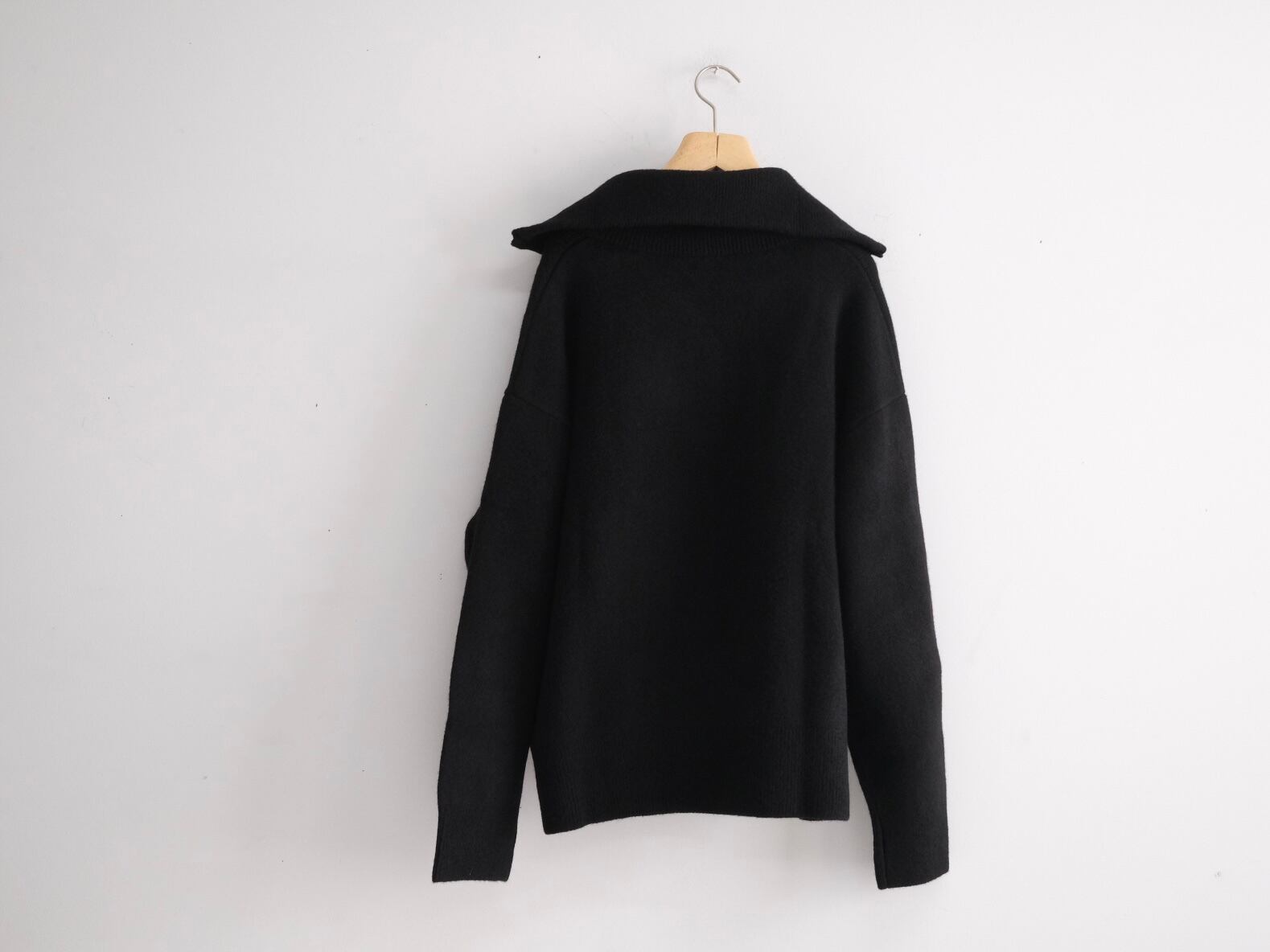 ネックが高めに設定したハーフジップセーター。ジップを開けて折り返してもしっくりデザインです。
