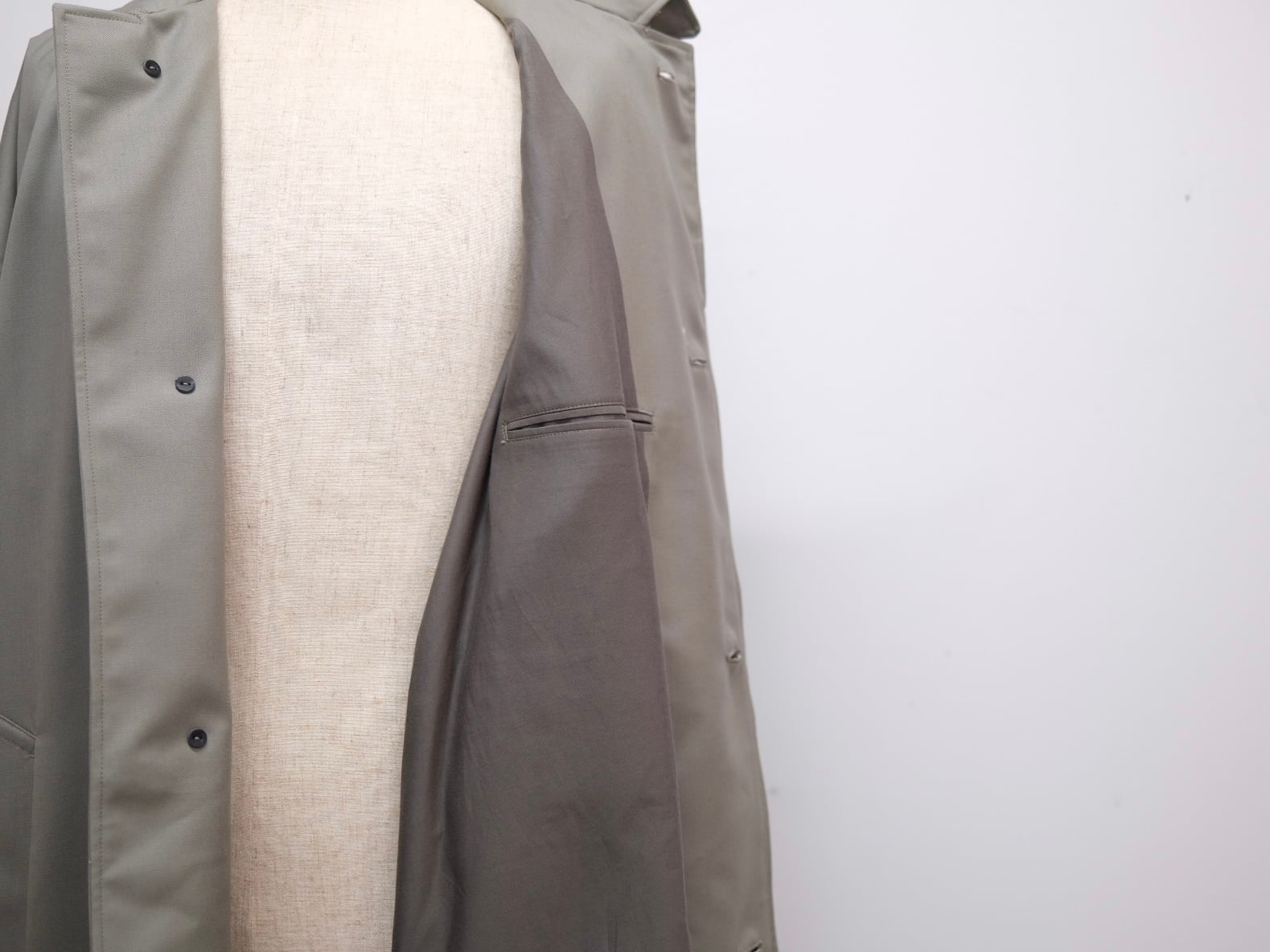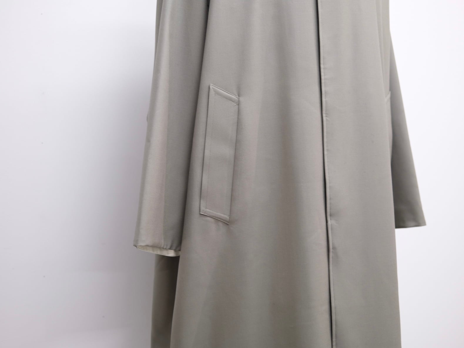 縦糸、緯糸共にメリノウールを使用したバックサテンギャバジンを使用したバルカーンコート。