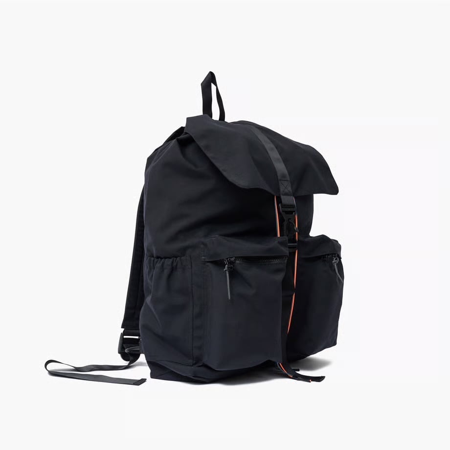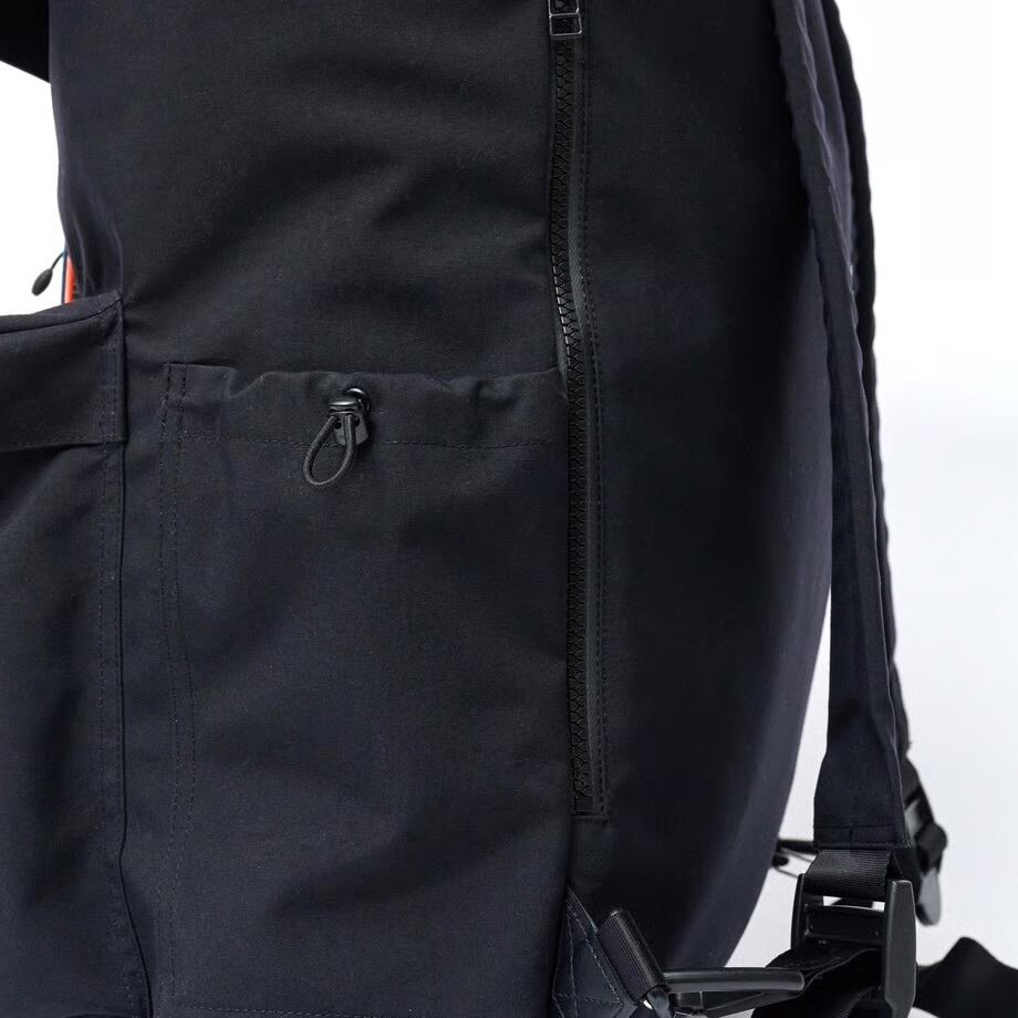 外側には大容量のマチ付きポケットを配置し、両サイドにはボトルホルダーを搭載。