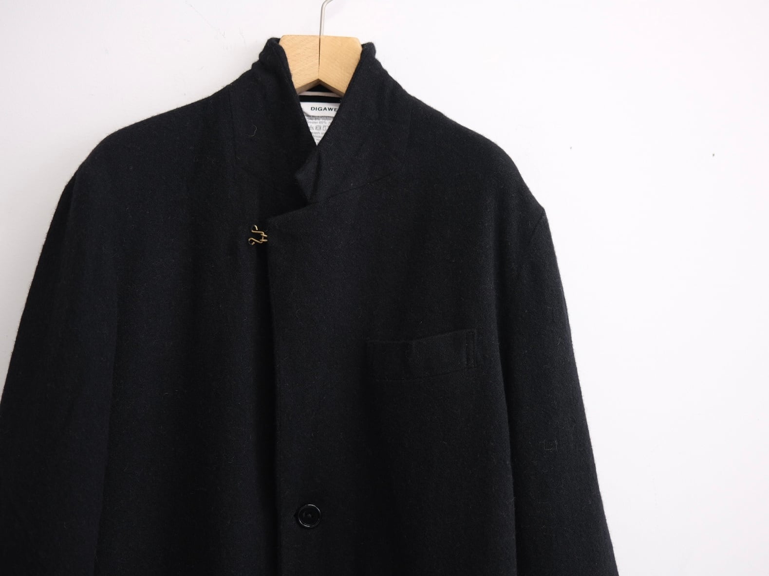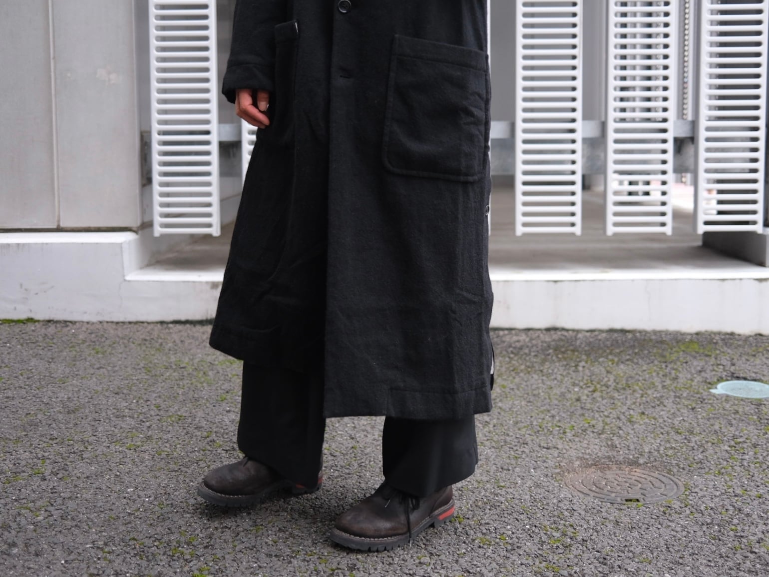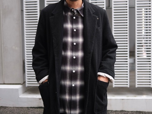 リサイクルウールを使用したヴィンテージ感のあるフラノを使用し、製品洗い加工+硬仕上げ剤を施しています。