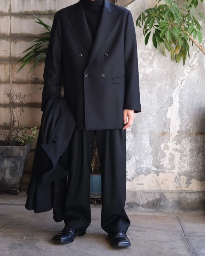 アップデートを繰り返しながら本格的なテーラード工場にて製作しているダブルブレステッドジャケット。熟練の職人による本格的なテーラード技術を駆使し、自然体で羽織れる事を前提としたデザインや仕様、素材選定を特徴としています。