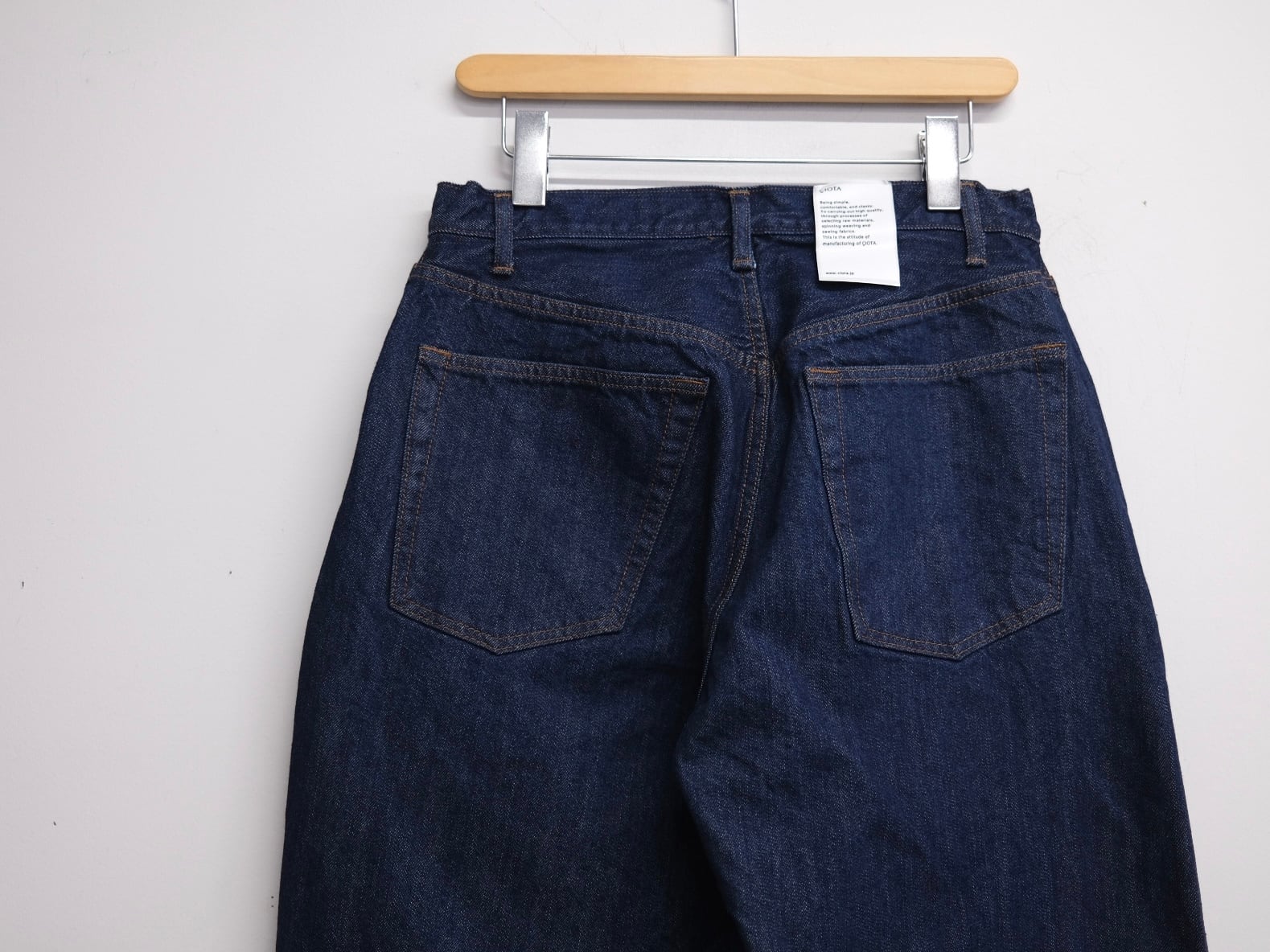 1990年代のルーズフィットジーンズをサンプリングしたバギーモデルがフルリニューアル。ゆったりとしたワタリから裾まで、そのままズドンと落ちていくシルエットはそのまま、旧モデルよりも股上は深く、股下は長くなっています。生地はのり抜き、防縮、斜行止め、毛焼きなどをしていない“生機”に変更。ブルーデニムはタテ糸に合成インディゴを使用したムラ糸、ブラックとグレーデニムはタテ糸に硫化染料によるロープ染色の中白糸を使用。ヨコ糸はどちらも超長繊細綿・スビンコットンを使い、旧式力織機(シャトル織機)でセルビッチデニムに仕上げています。しっかりとした質感としなやかな履き心地を両立した新感覚のバギーです。