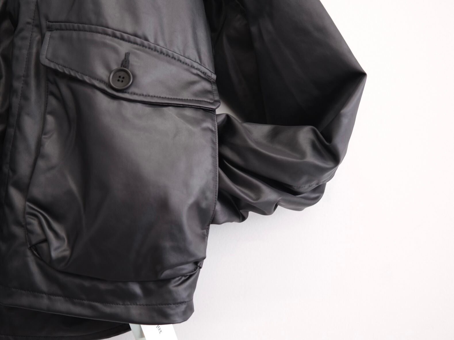 更に生地の表面へカレンダー加工を施すことでレザーのような表情を生み出しています。