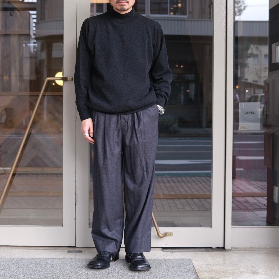 内モンゴル最東端に生息する希少なカシミヤヤギの繊維を使用。長時間の日照と肥沃な土地で育ったヤギから得られる、極細ながら強度のある原料。独自開発の極細番手カシミヤ糸を採用し、柔らかさだけでなく、ハリ・コシを備えたこれまでにないタッチを実現。極細糸を密に編み上げた32ゲージの高密度スムース編みにより、しなやかで弾力のある仕上がり。