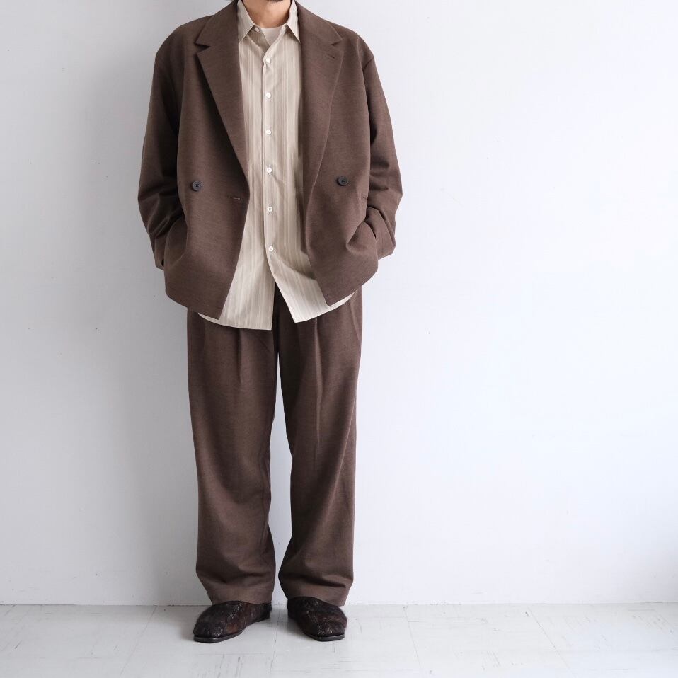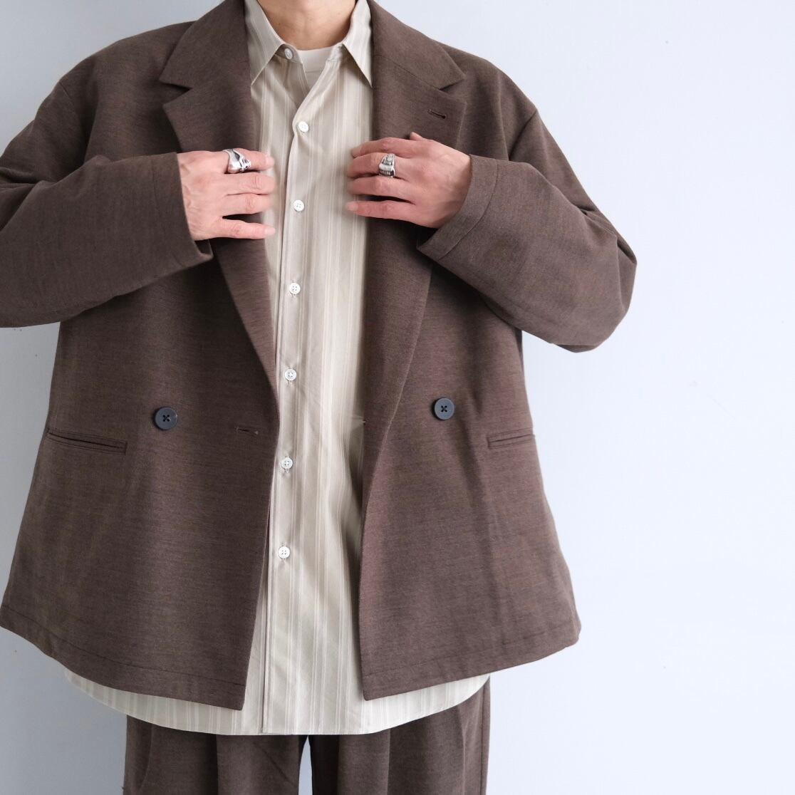 等間隔の最大 太ピッチで組んだヘリンボーン柄しっかり巾をとったダブルジャケット。