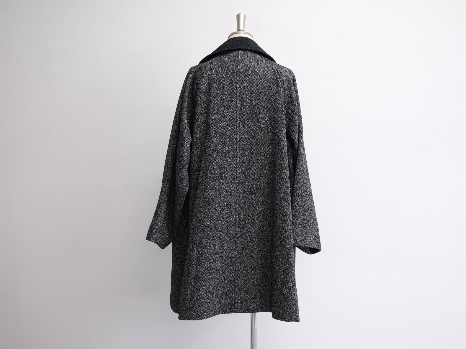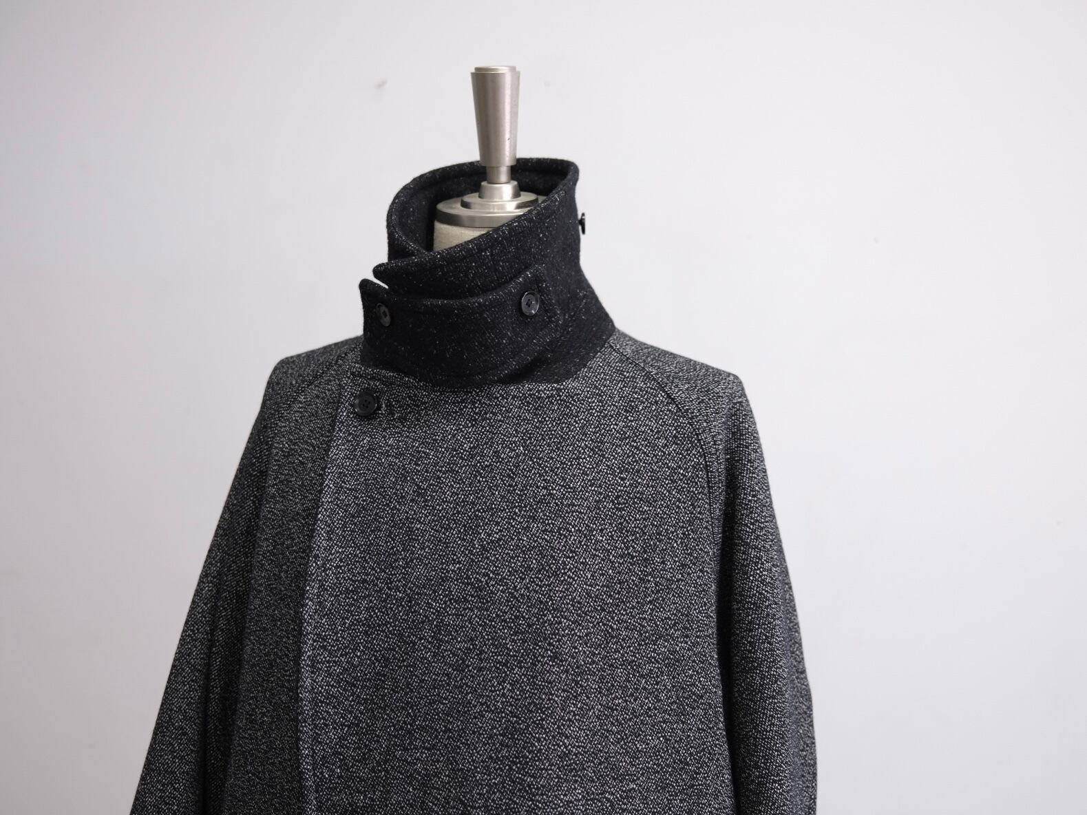 襟〜袖周りの収まりと全体のフォルムを拘り、ブリティッシュなムードでミニマムに仕上げています。衿とラペルは起毛された裏面を使用し、見た目のアクセントと肌あたりの良さを加えています。