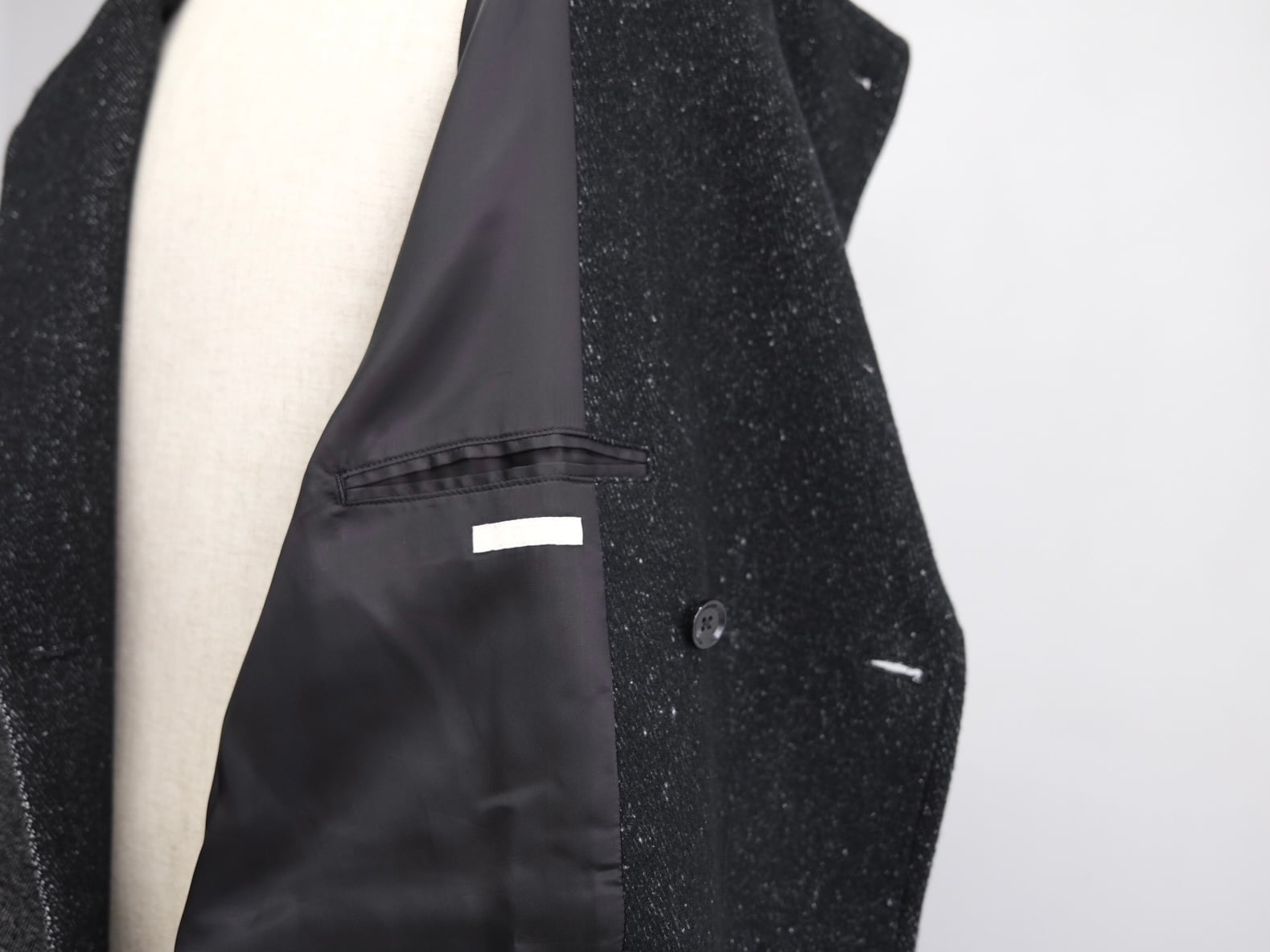 クラシックなオーバーコートをモダンですっきりしたバランスで仕上げたダブルブレステッドコート。