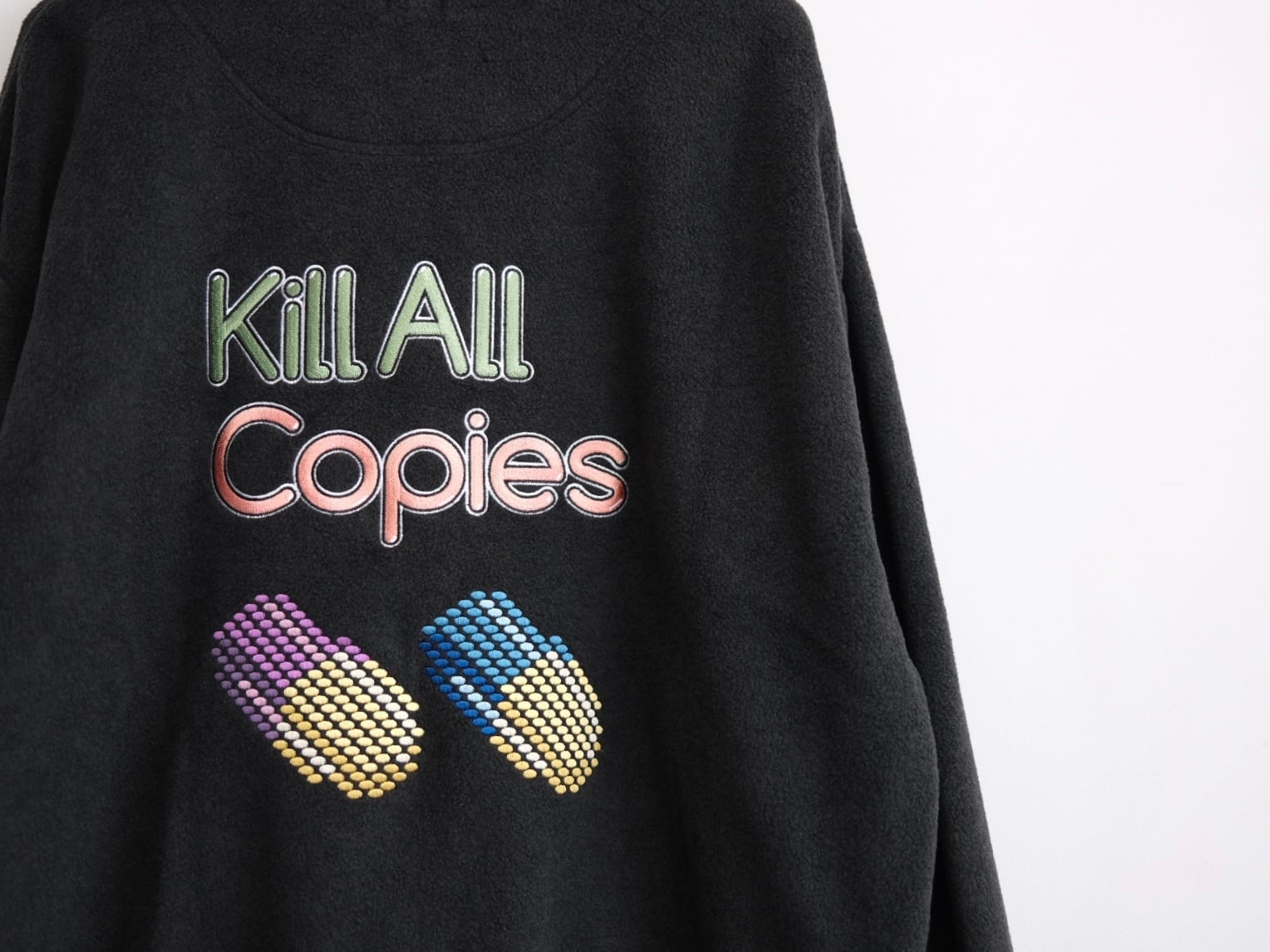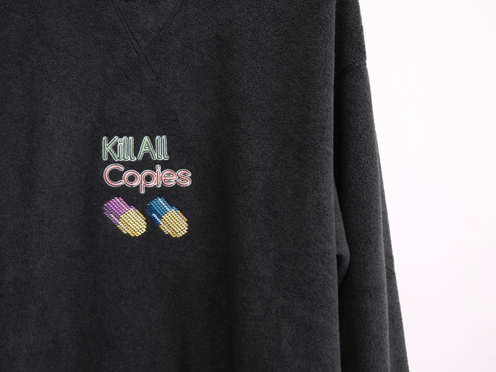 フリースウェットに刺繍加工。