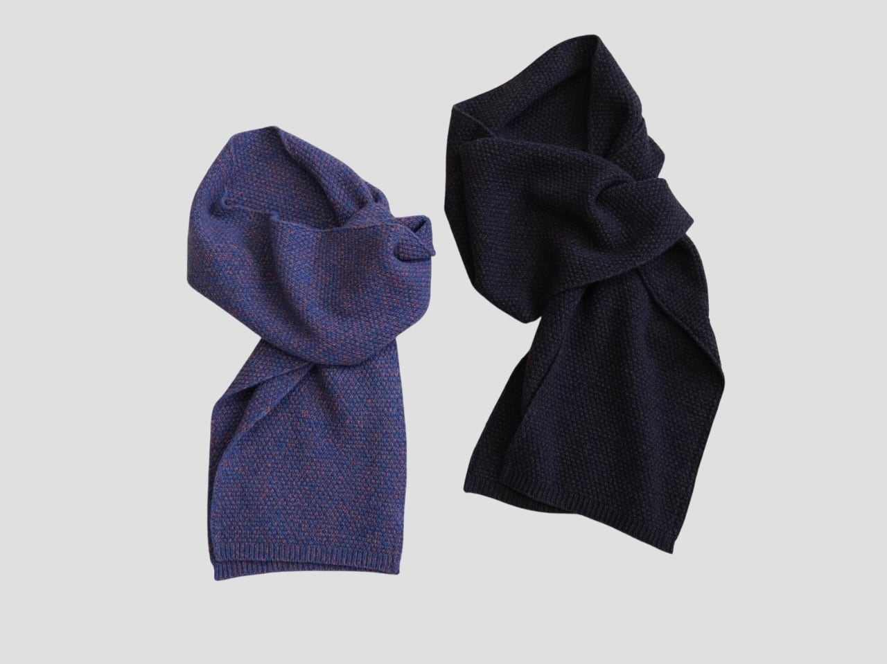 クレプスキュールといえばのミックスカラーのカノコ編みのマフラー。