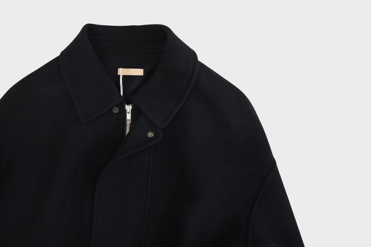 ウール生地を2枚合わせた、贅沢な作りのダブルフェイスドリズラー型ブルゾン。