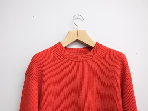 Women BATONER” SOLID WOOL RIB CREW NECK “ VERMILION