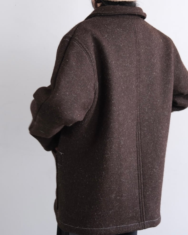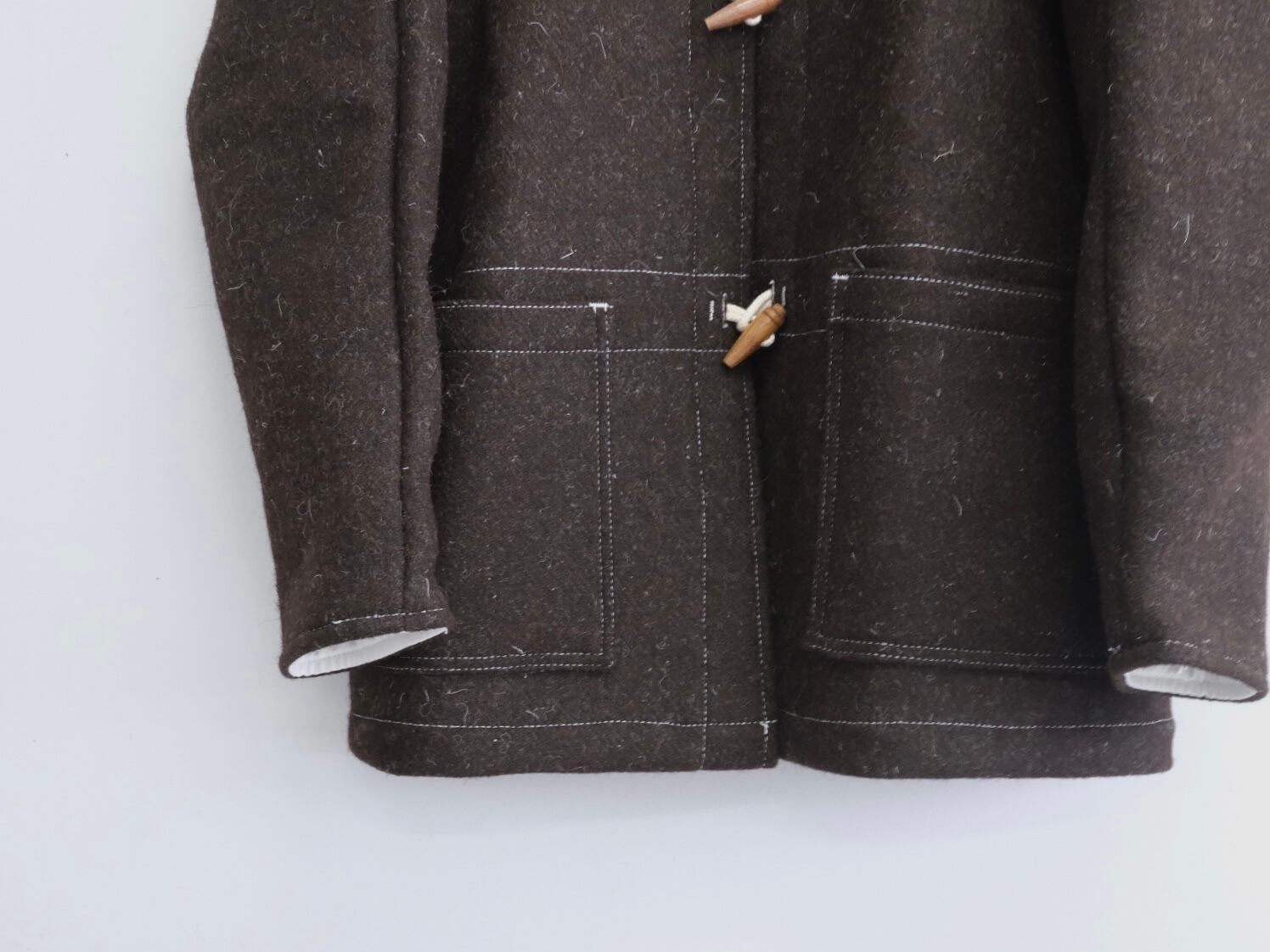 sheep’s wool melton fabric. The large patch pockets are supported