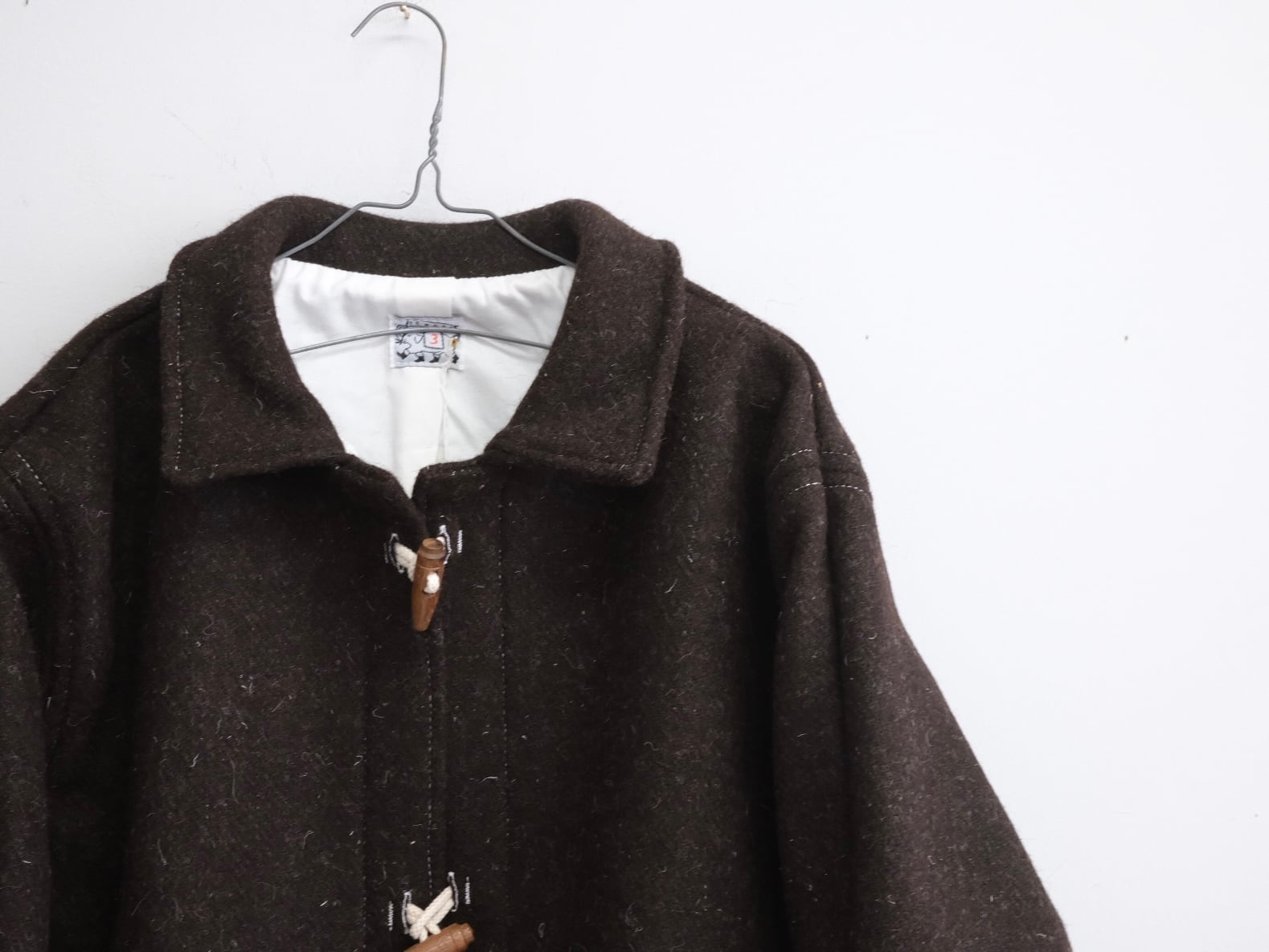 Toggles on a traditional duffel coat are fastened with cords that end