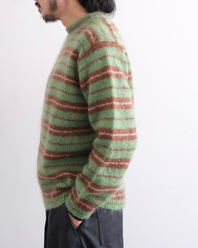 YONETOMI NEW BASIC” MOHAIR WOOL BORDER KNIT P/O”
