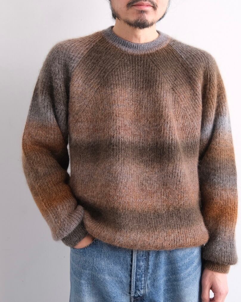 スーパーキッドモヘヤを使用した糸をロングピッチでカスリ染めした商品です。柔らかな肌触りに加えニット特有の染色技法による雰囲気を味わっていただけるシリーズです。