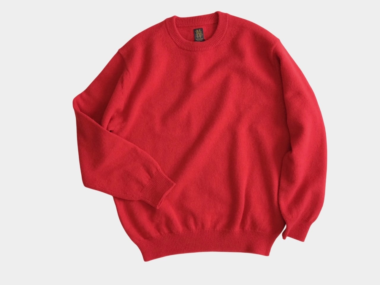 英国羊毛の中でも最上級として知られるブルーフェイス100%のニットを初めて作りました。英国羊毛らしい弾力性のある膨らみがありながら、優しい肌触りと美しい光沢感、軽さを合わせ持ったブルーフェイスならではの特徴が引き立つ素材感のある商品となっております。