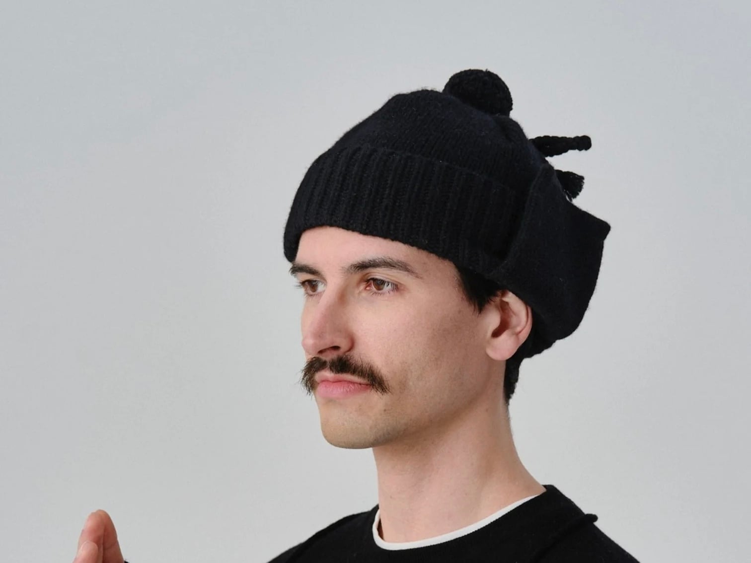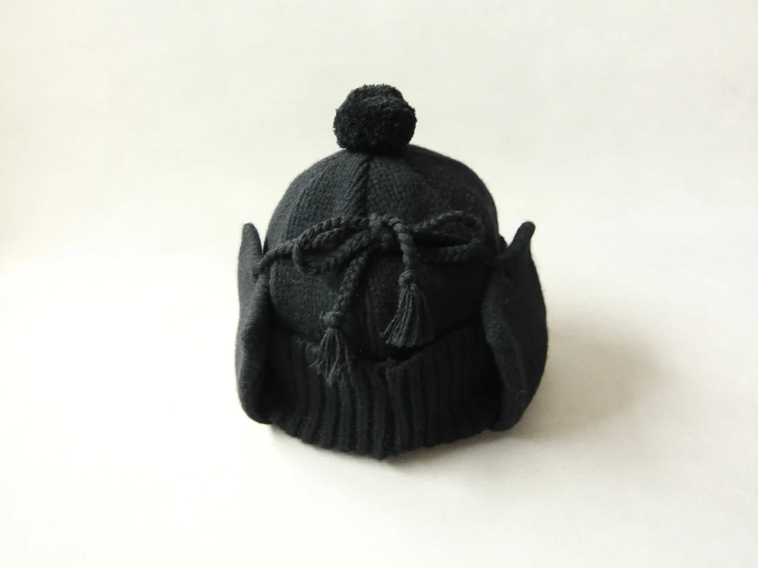 三つ編みのひもを垂らしレトロな雰囲気を持ちながらも、直線的なイヤープラップのデザインでエッジを効かせました。