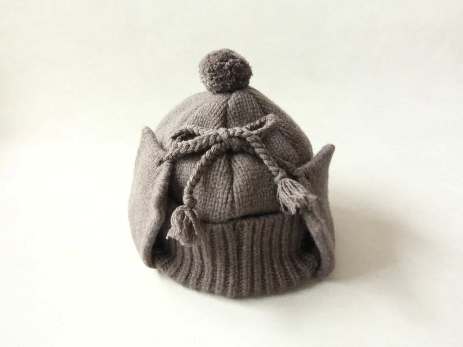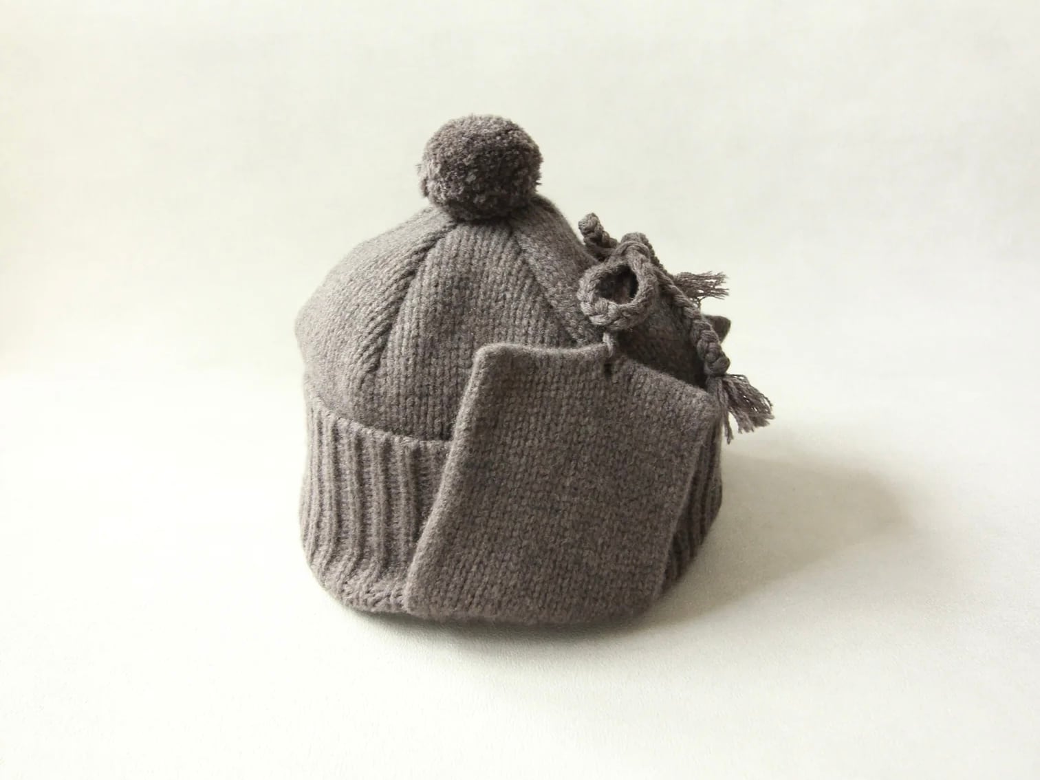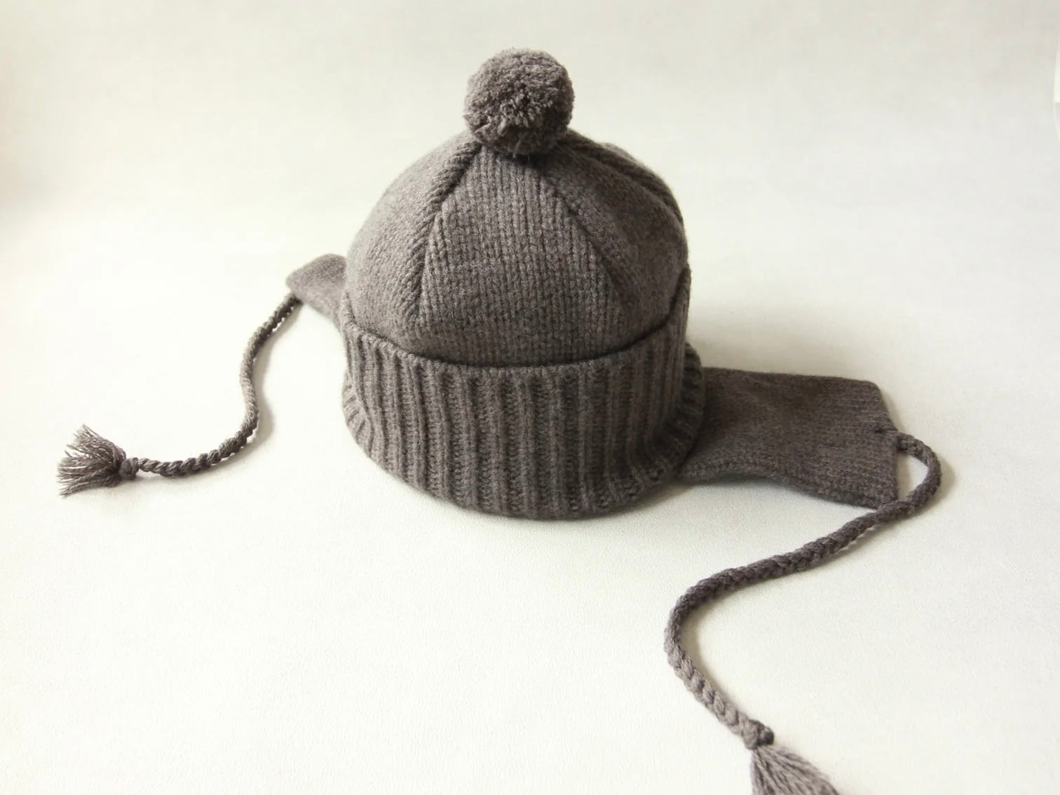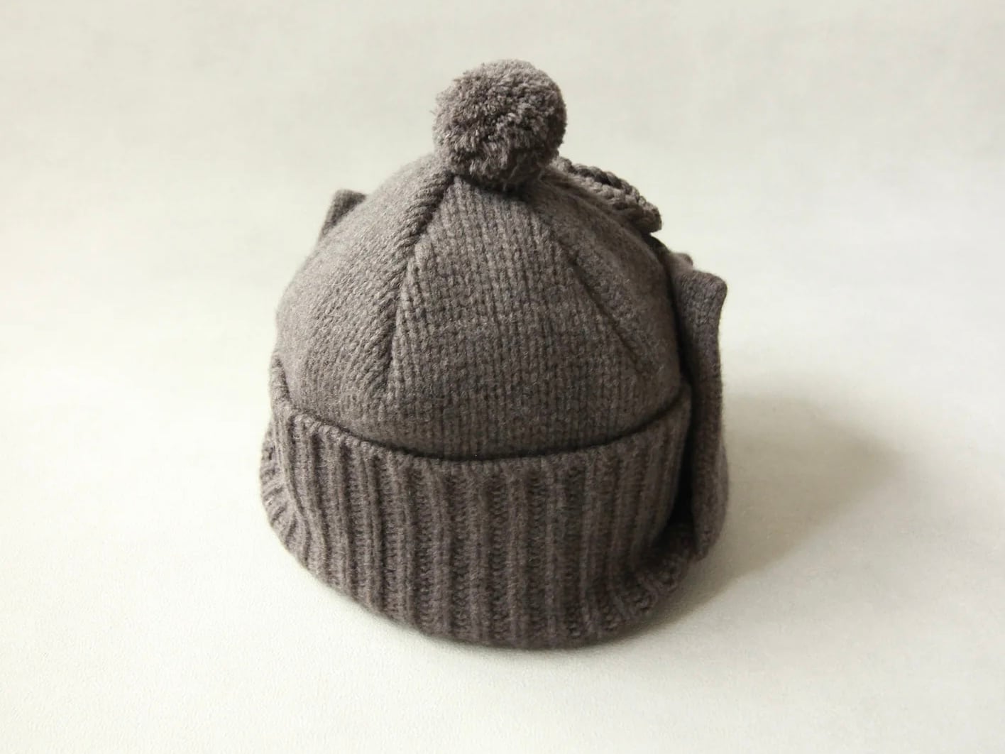 ふわっとした優しい風合いのエクストラファインラムズウールで編み立てたポンポンニット帽。