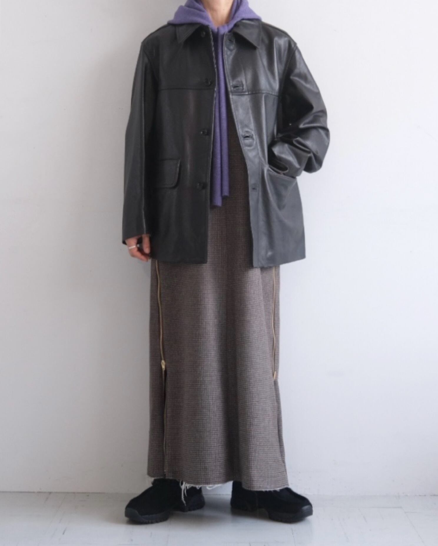 チンタブで襟も立てられます。少しゆとりのあるサイズ感で、ユニセックスに着て頂けます。
