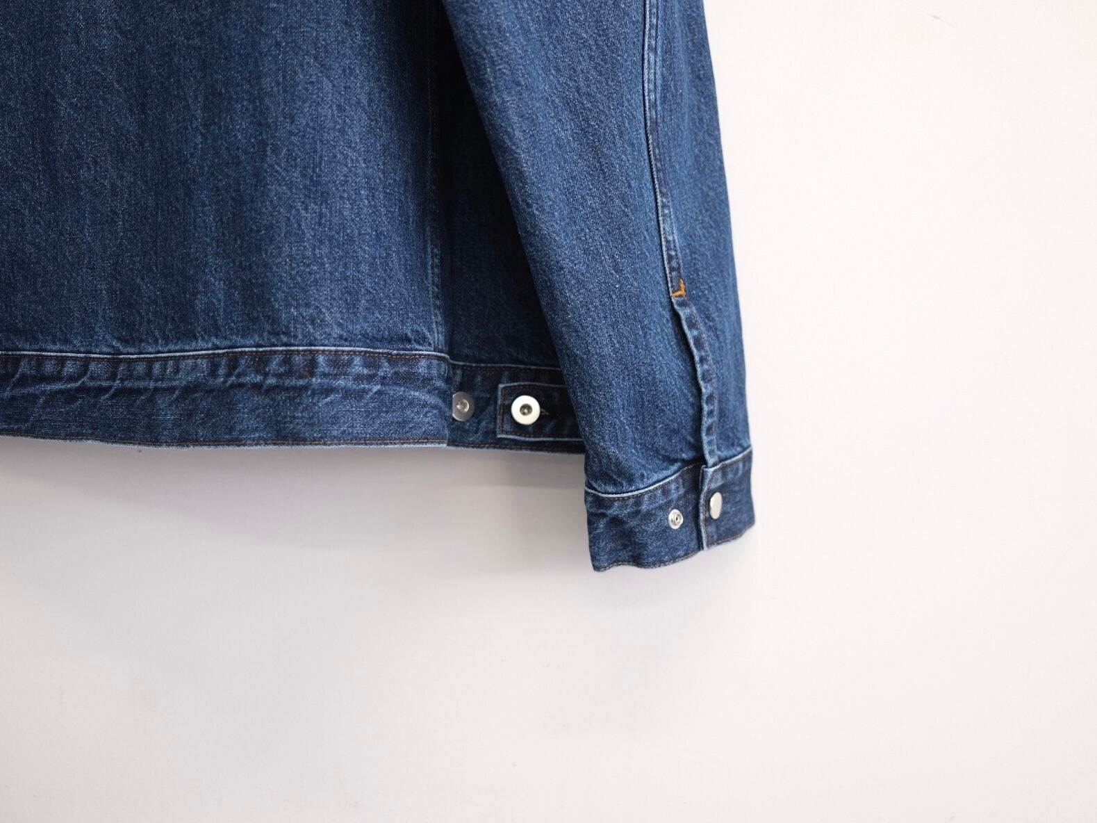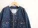 備後産のコシのある上質な13.2ozの国産デニムを使用した、ノーカラージャケット。