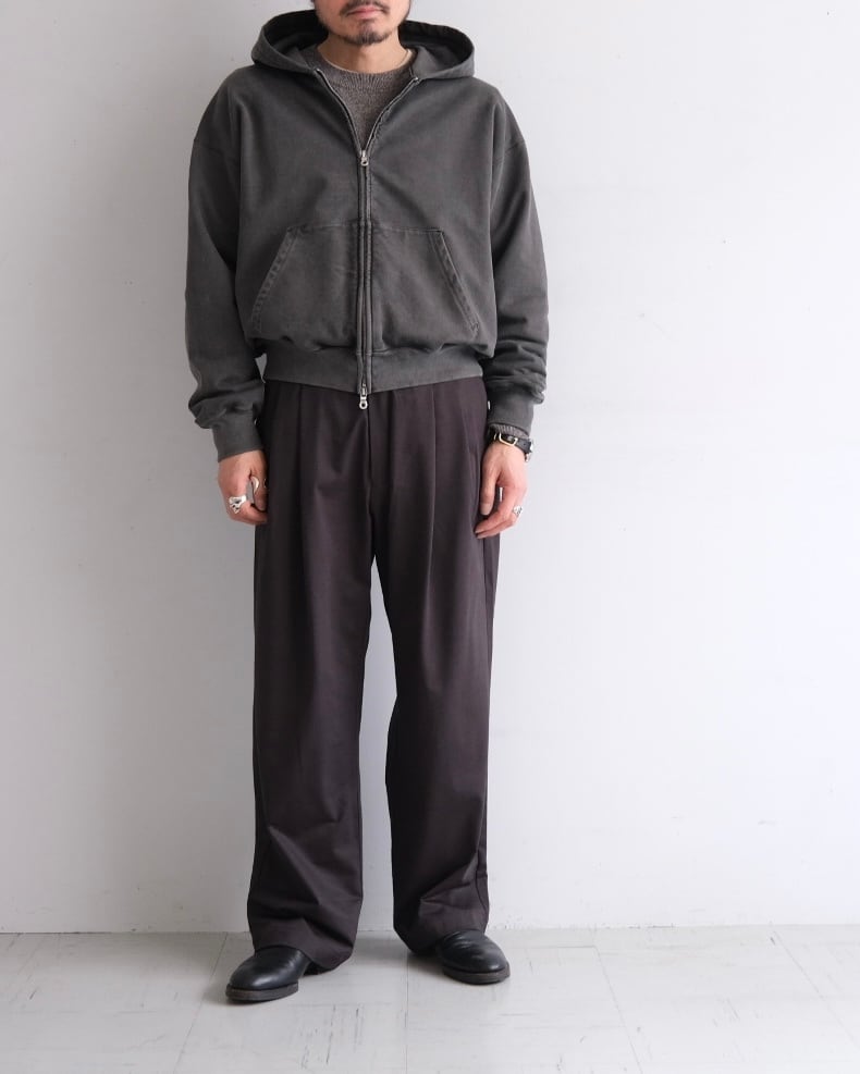程よいルーズ感の定番フーディー。アームホール、身幅から、フードまで全てのパーツを計算し、パターンを引くことで、生地のポテンシャルを最大限に生かしております。