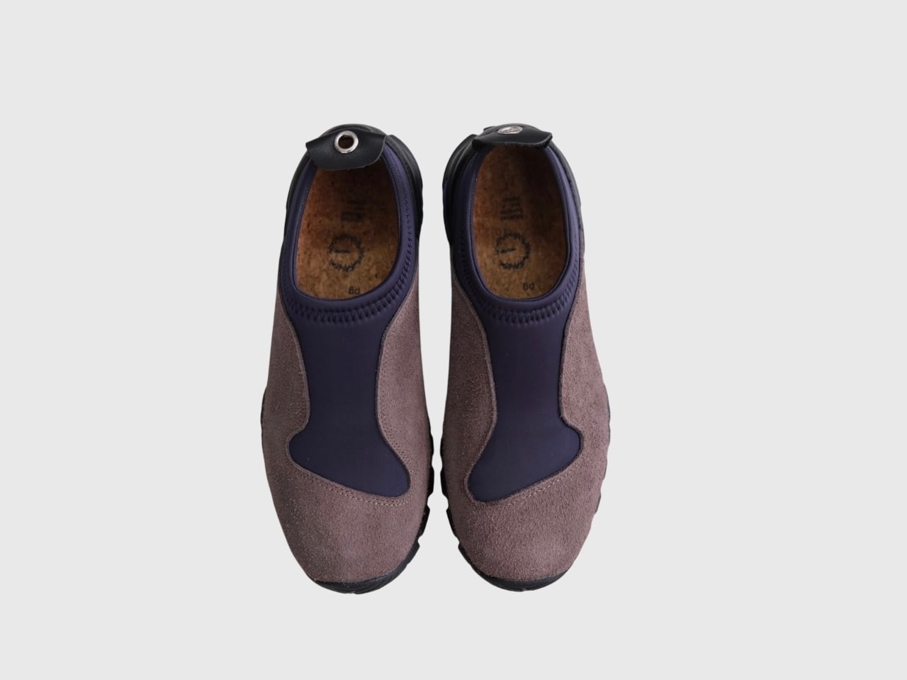 ライト・トレッキング用のvibram®ソールを搭載した、新しいモックタイプのシューズTRAIL MOCです。たくさんの方に愛されたGARDEN MOCの後継モデルになります。前作よりシャープでよりアクティブなシーンで活躍する1足です。アッパーは表面に毛羽立ちがあるシャギースエード(牛革)と伸縮性のあるネオプレーン、ヒールにスムースレザー(牛革)の3素材で構成しています。我々は古今東西、様々なスニーカーに触れています。調節器具がつかないスリッポンのモックシューズは、いつでも魅力を感じます。街でも自然の中でもフィットする、今履きたい新しいモックシューズ、TRAIL MOCの登場です。