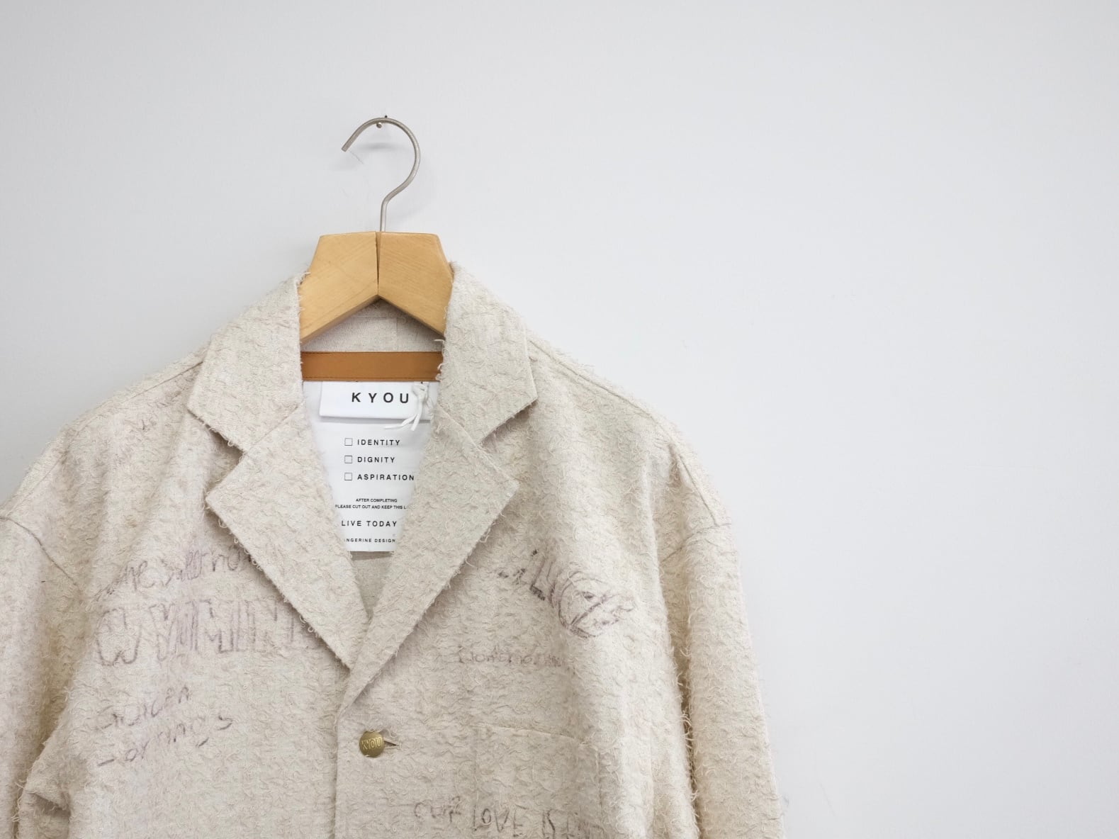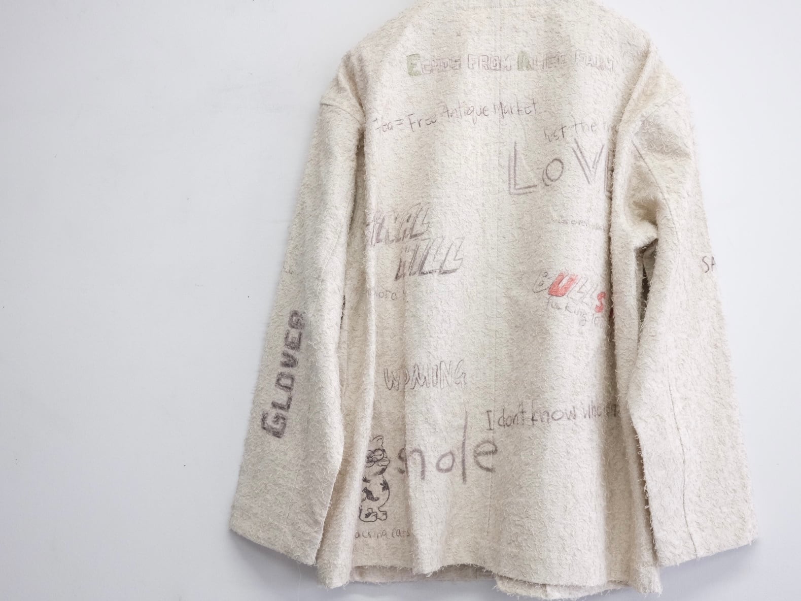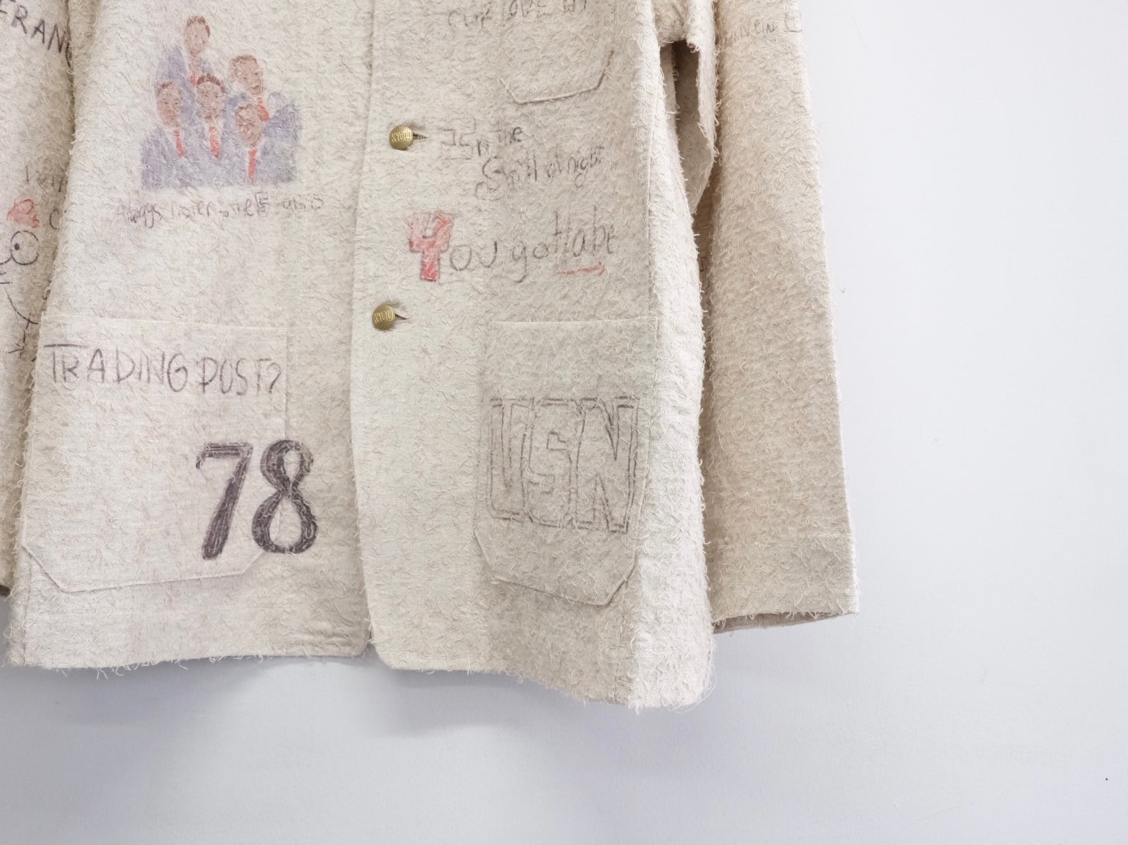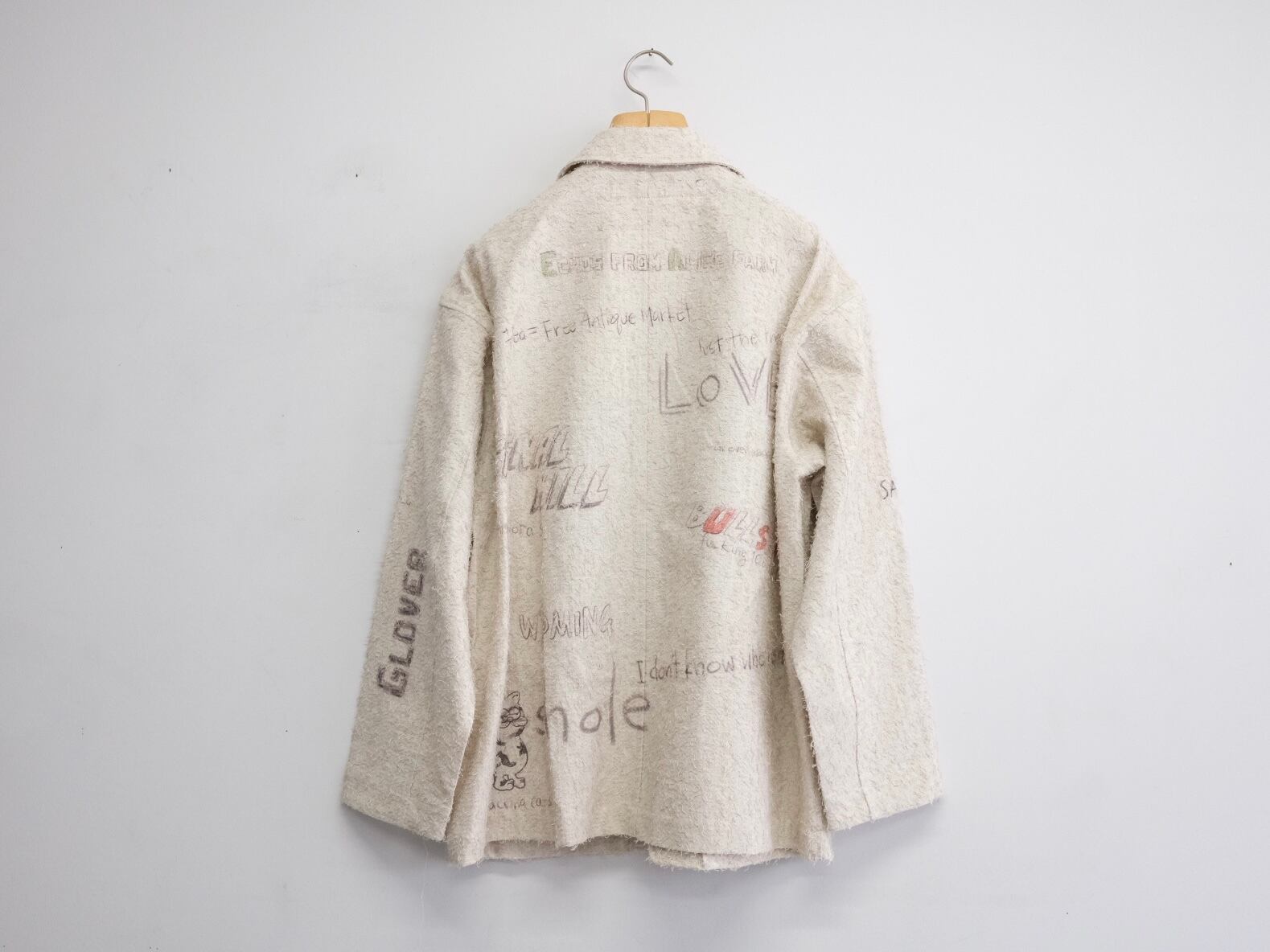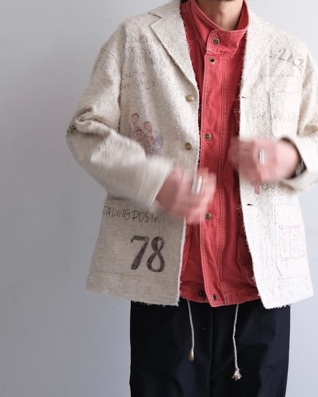 使い古された生地に、彼の感情が色とりどりのグラフィックとして刻み込まれる。