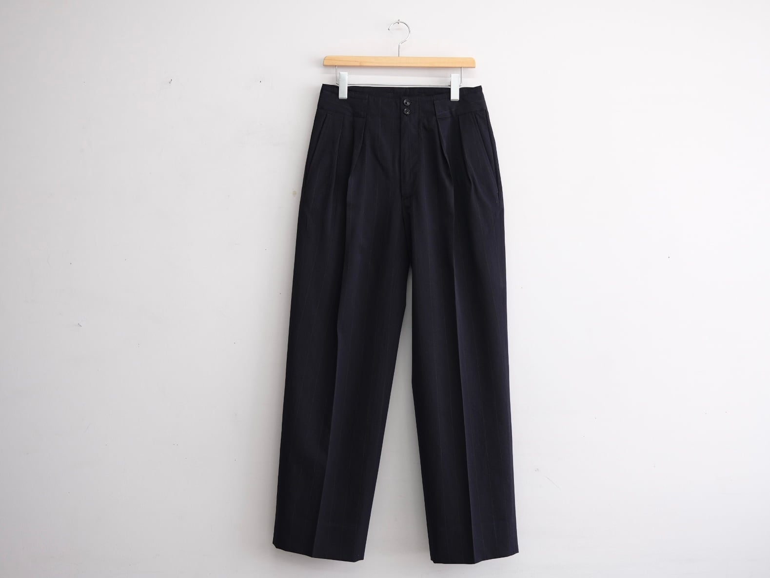 WOOL WASHI STRIPE TUCKED TROUSERS