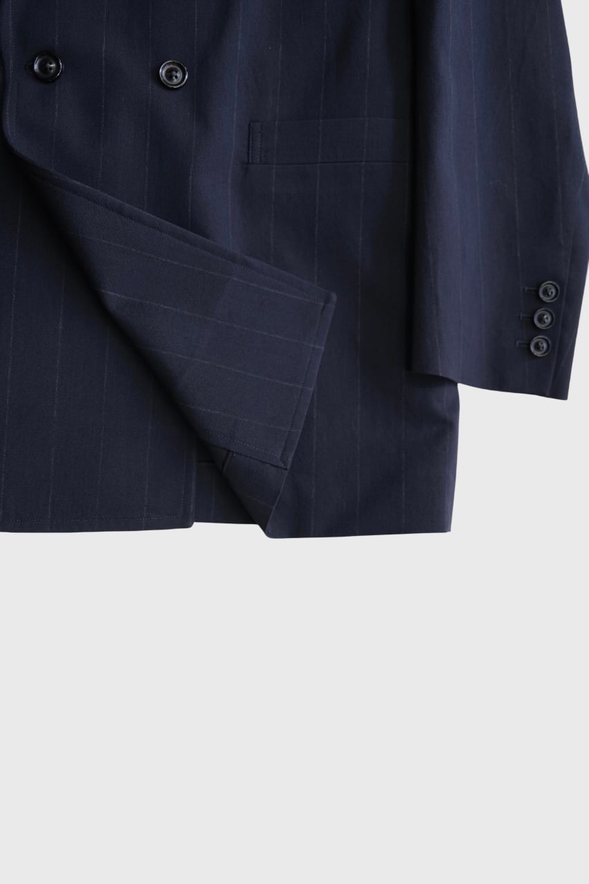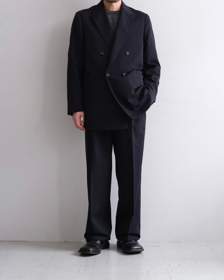 アップデートを繰り返しながら国内屈指のテーラード工場にて製作しているダブルブレステッドジャケット。熟練の職人による本格的なテーラード技術を駆使し、自然体で羽織れる事を前提としたデザインや仕様、素材選定を特徴としています。端正な美しさの中にカジュアルでデイリーな感覚を持たせたアンコン仕立てのジャケットです。