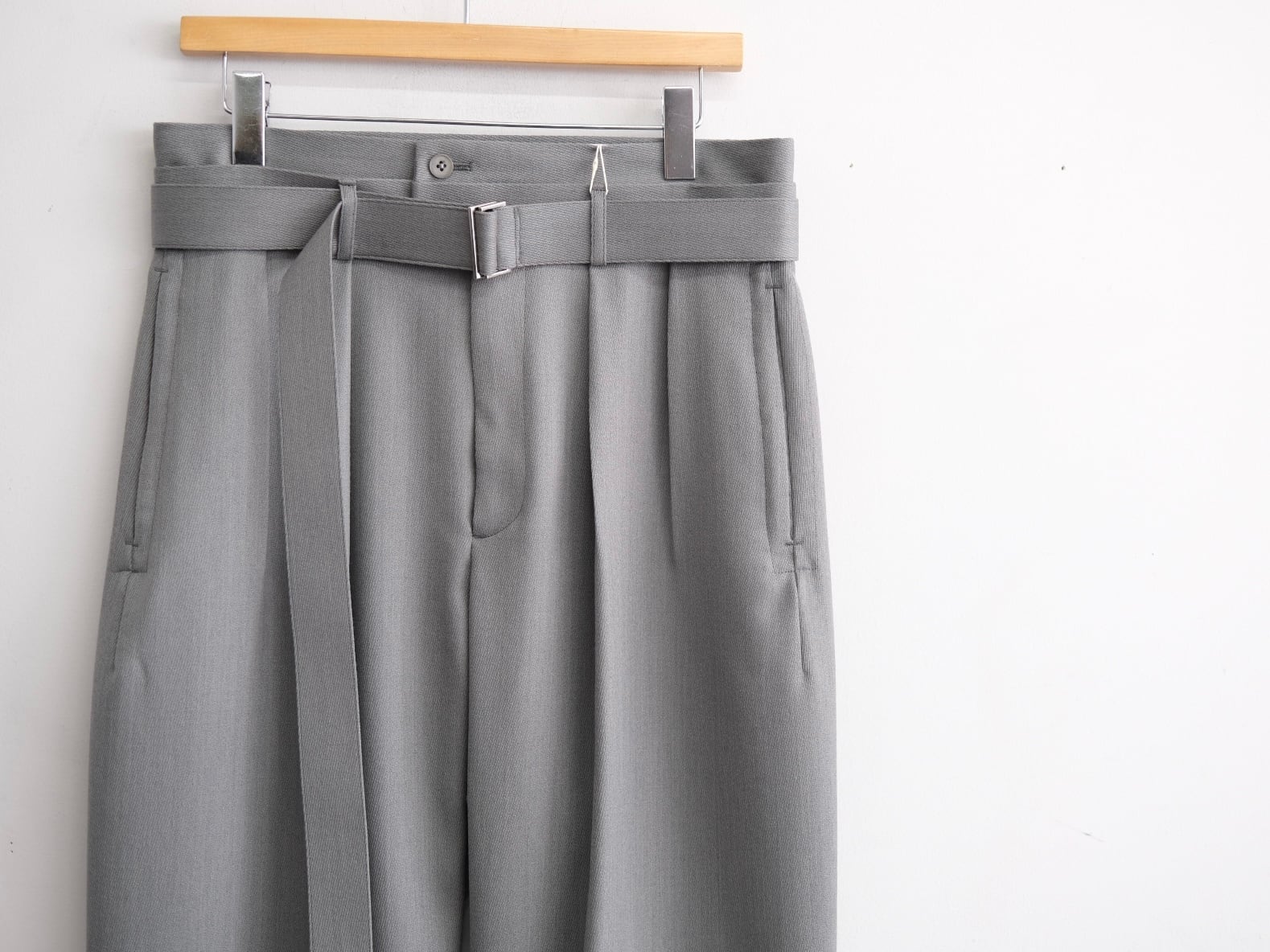 SAU63 PT181 MK-003 Color Grey Green Quality Wool100% Size 2,3,4 Price ¥46000(+tax) Size 2 ウエスト74cm股上33.5cm股下70cmワタリ33.5cm裾幅22cm Size 3 ウエスト80cm股上35.5cm股下73cmワタリ35cm裾幅23cm Size 4 ウエスト84cm股上36cm股下74cmワタリ36cm裾幅23.5cm