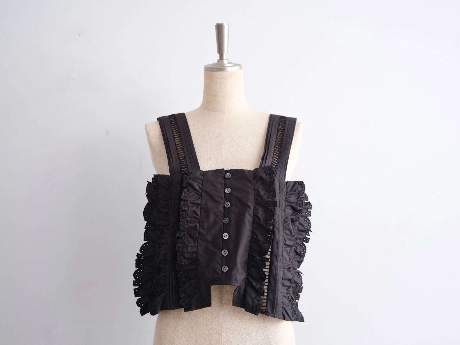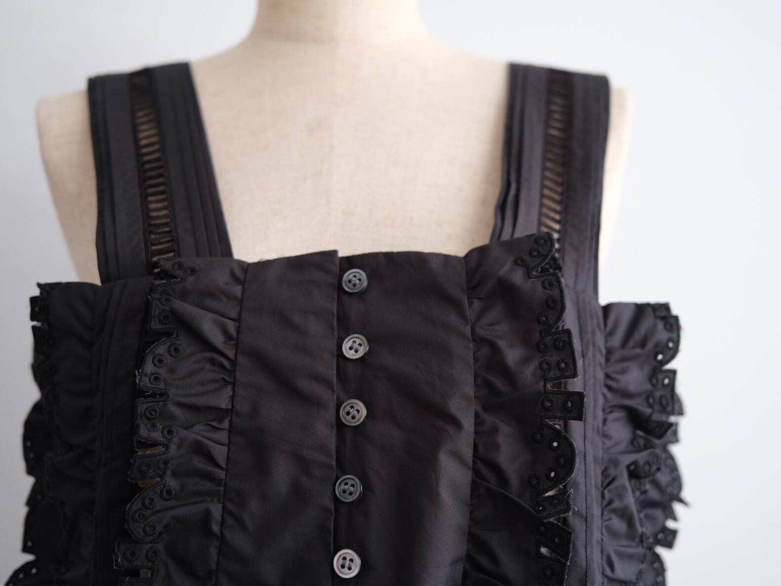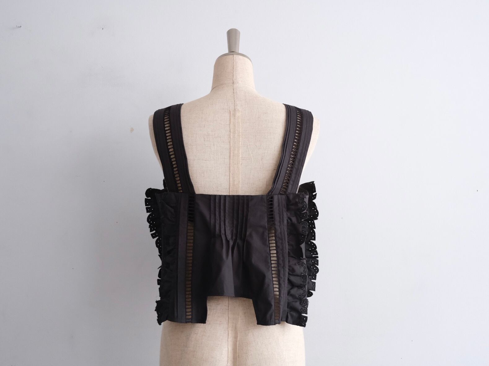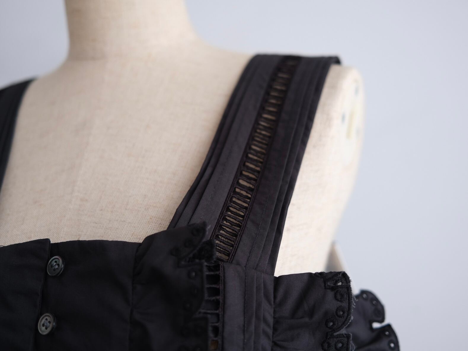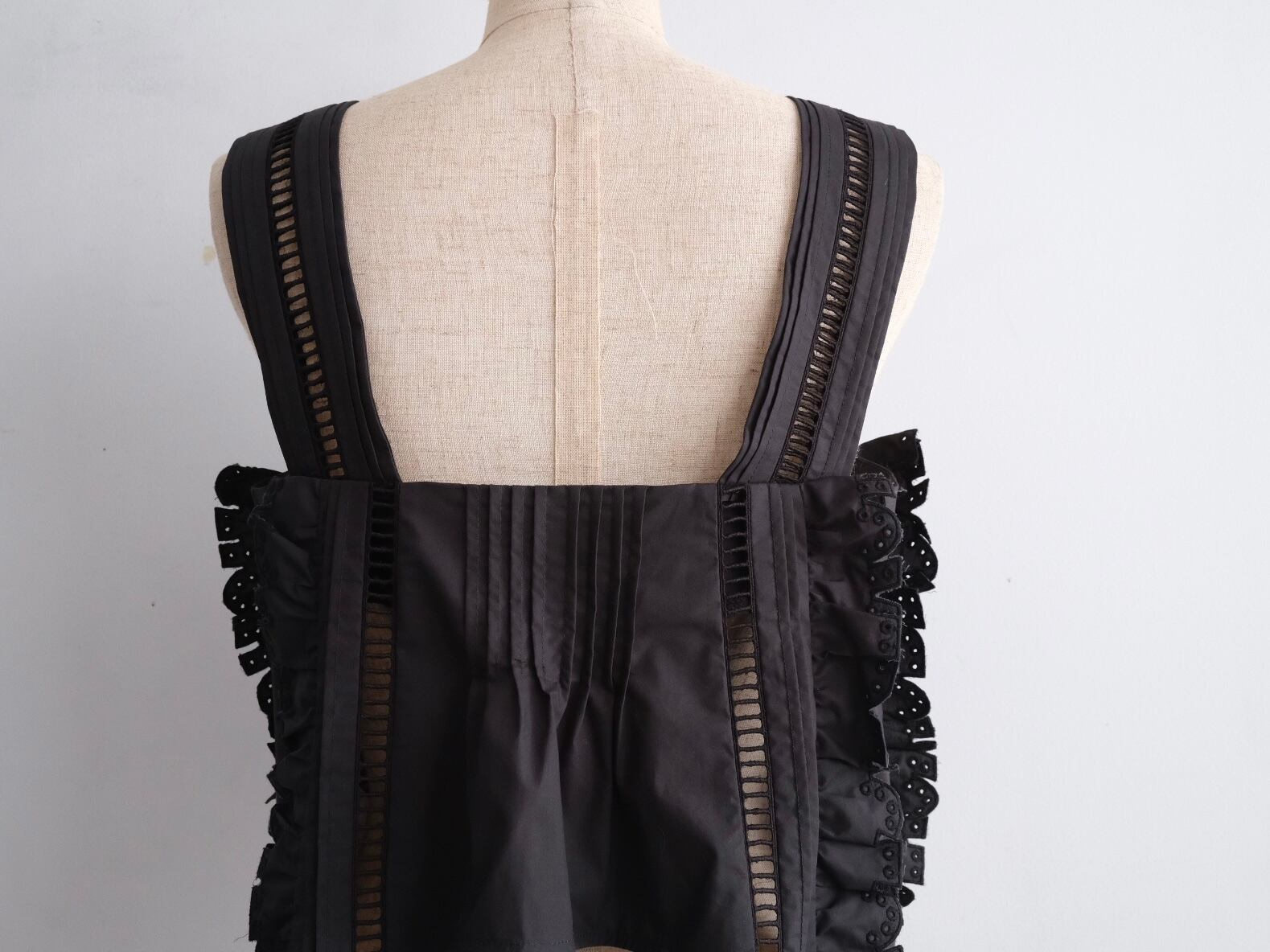 ColorBlack Quality Cotton100% Size F CF丈22.5cm/CB丈20cm/脇丈26.3cm/バスト92cm/肩紐巾6cm/肩紐(襟ぐり側)40cm Price ¥54000+tax