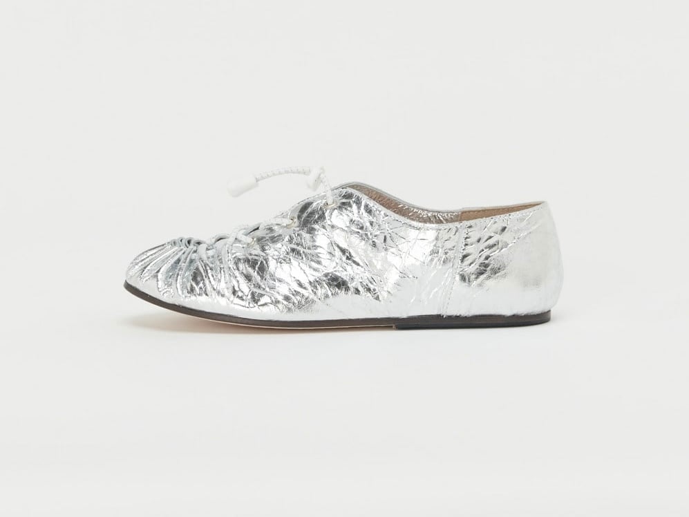 Color silver upper: cow leather lining: cow leather/nylon 60%:polyurethane 40% sole: leather sole/rubber size: 2(23.5-24.0cm), 3(24.5-25.0cm), 5(26.5-27.0cm)