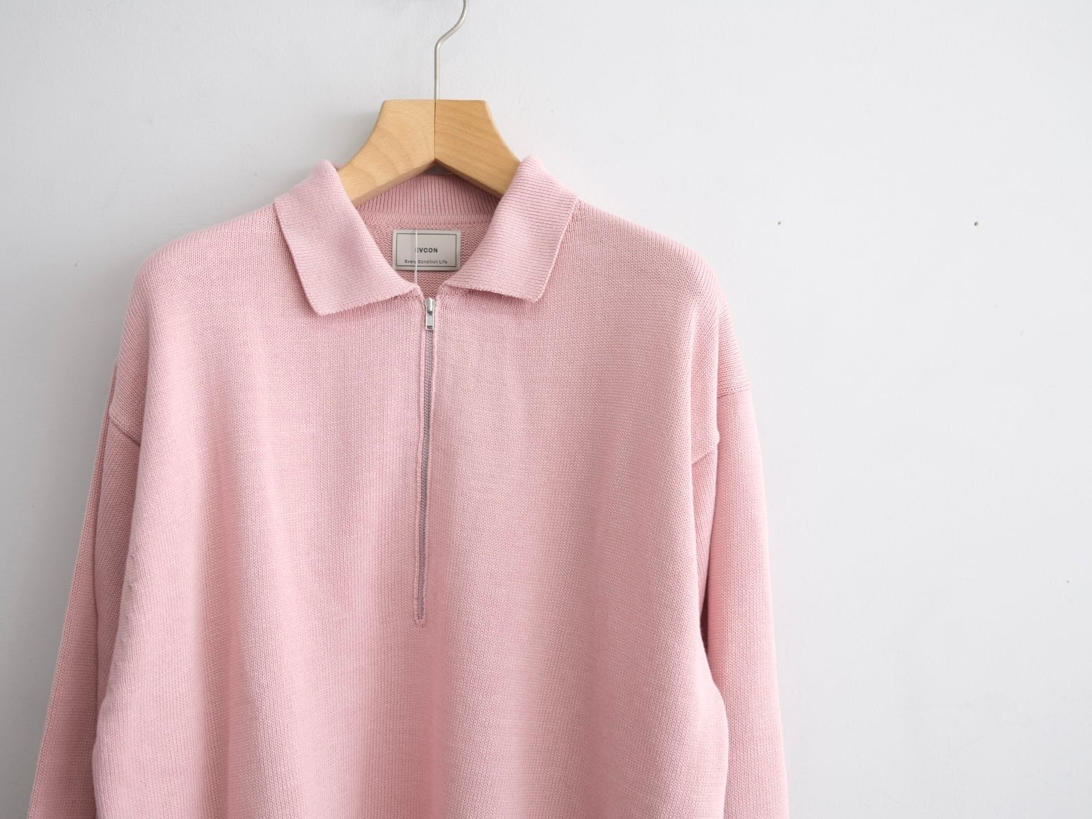 EVCON” COTTON KNIT HALF ZIP PINK“
