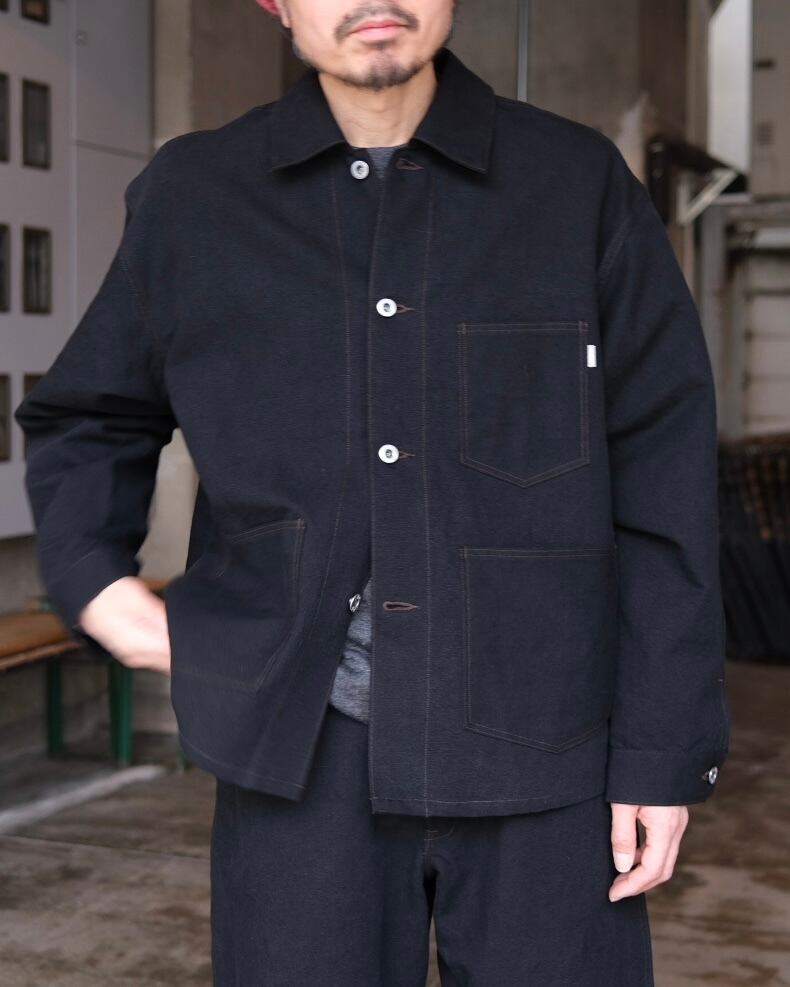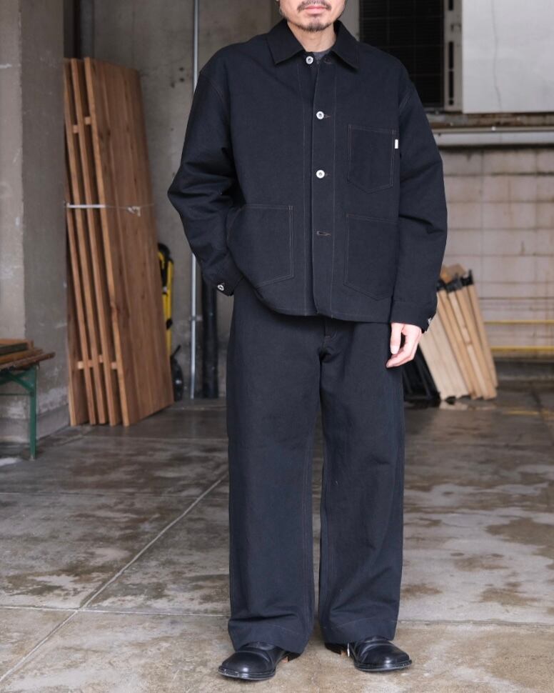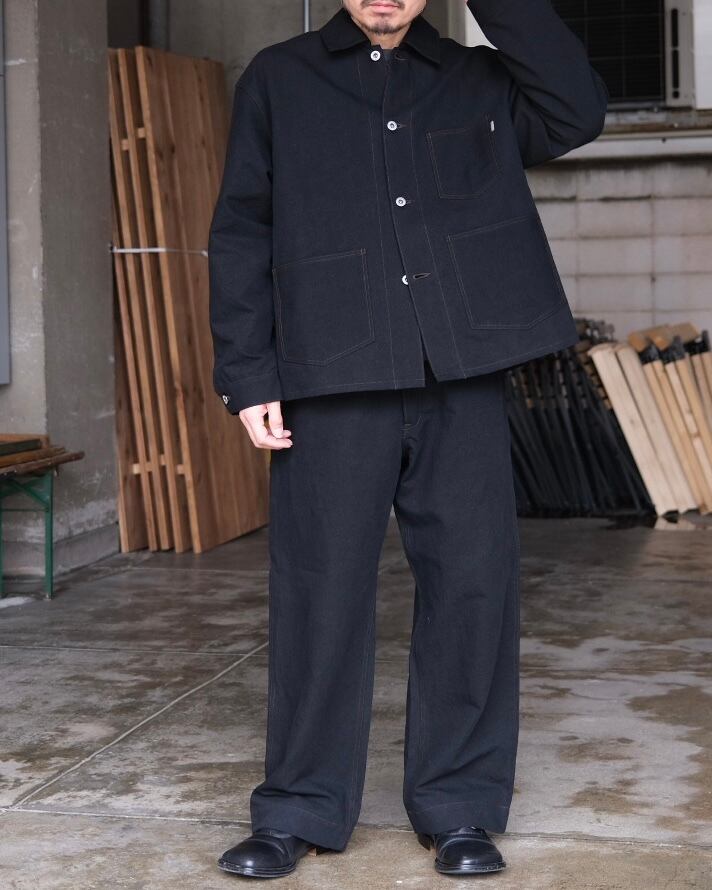 身幅をワイドにとり、着丈を抑えたボックスシルエット。カバーオールとGジャンの間を狙ったデザインです。