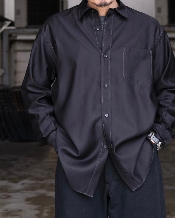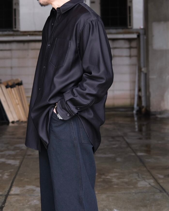全体的にゆとりのあるシルエットとなっており、襟は少し小さめのレギュラーカラー。