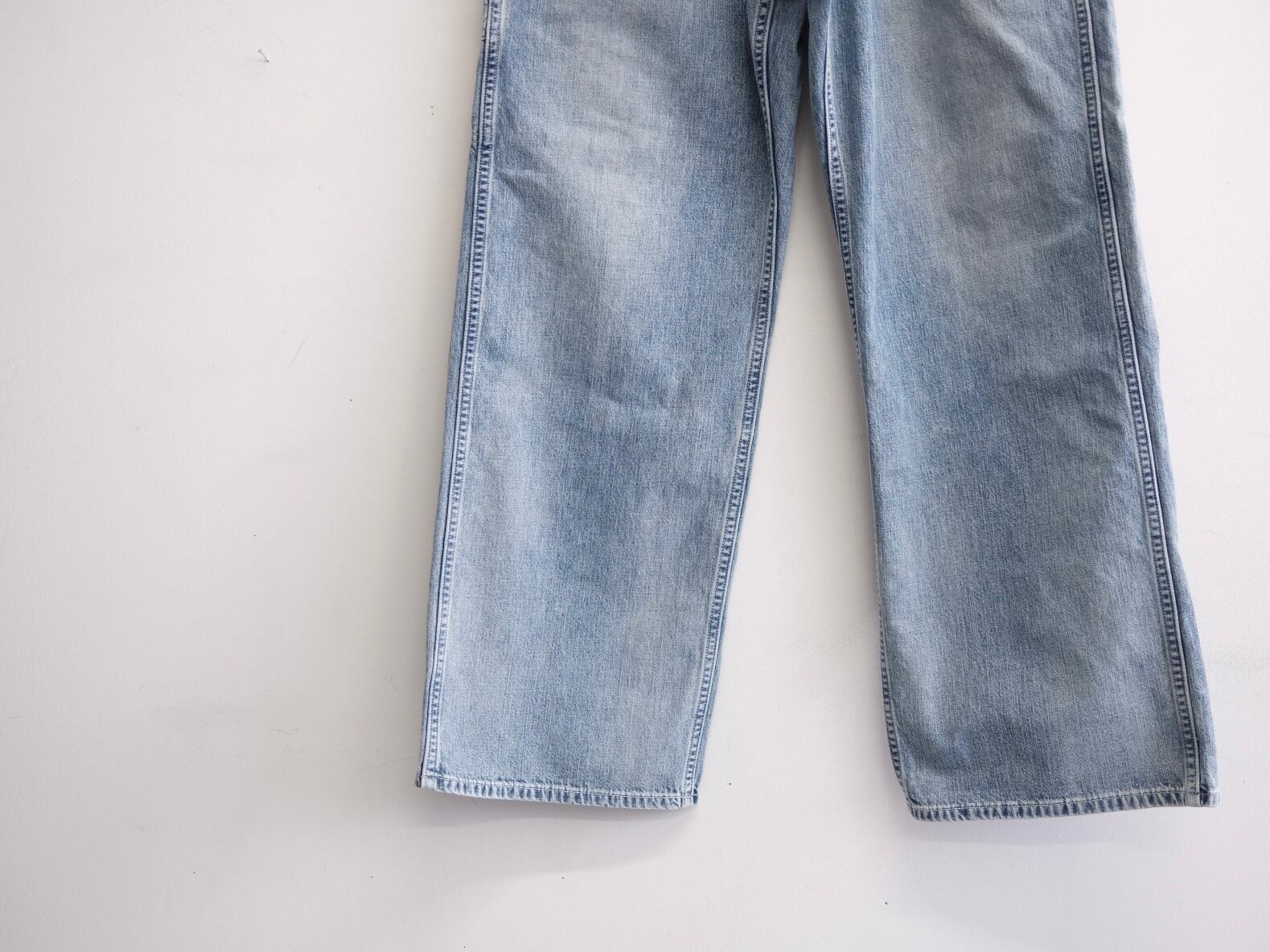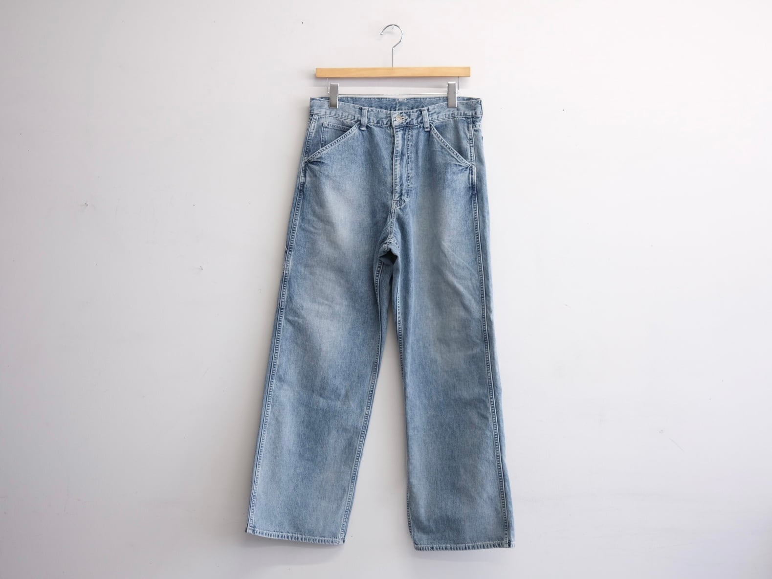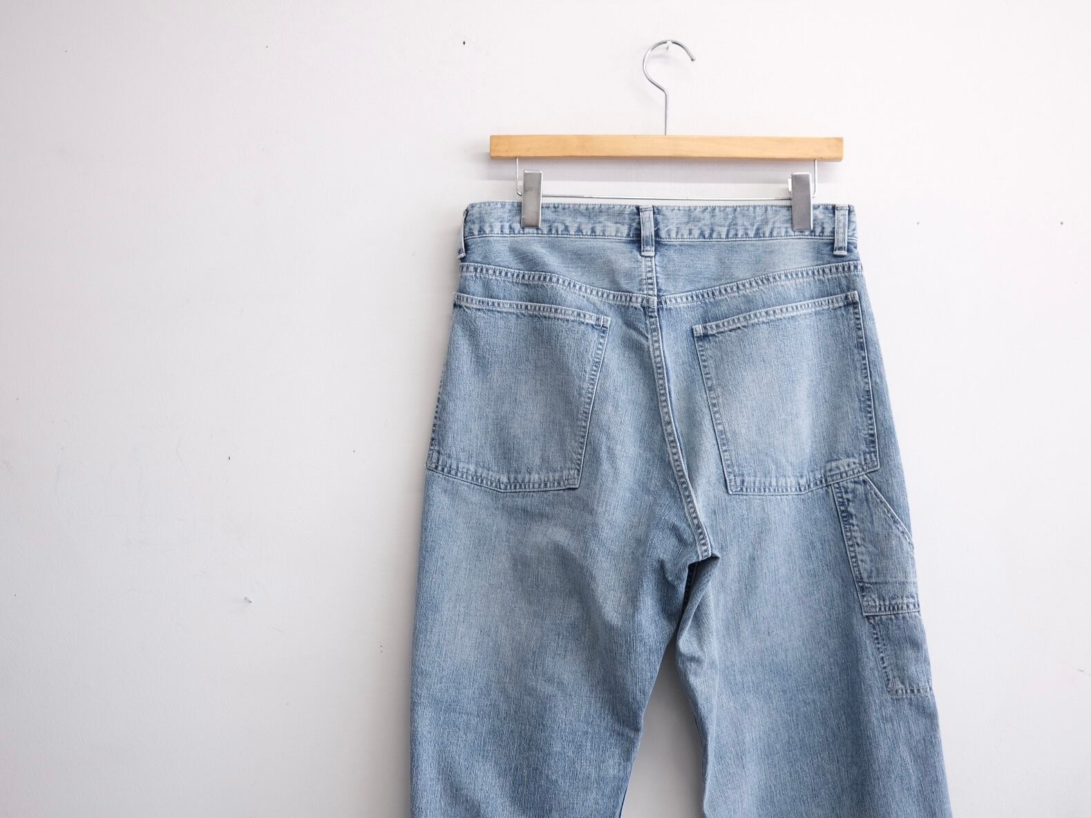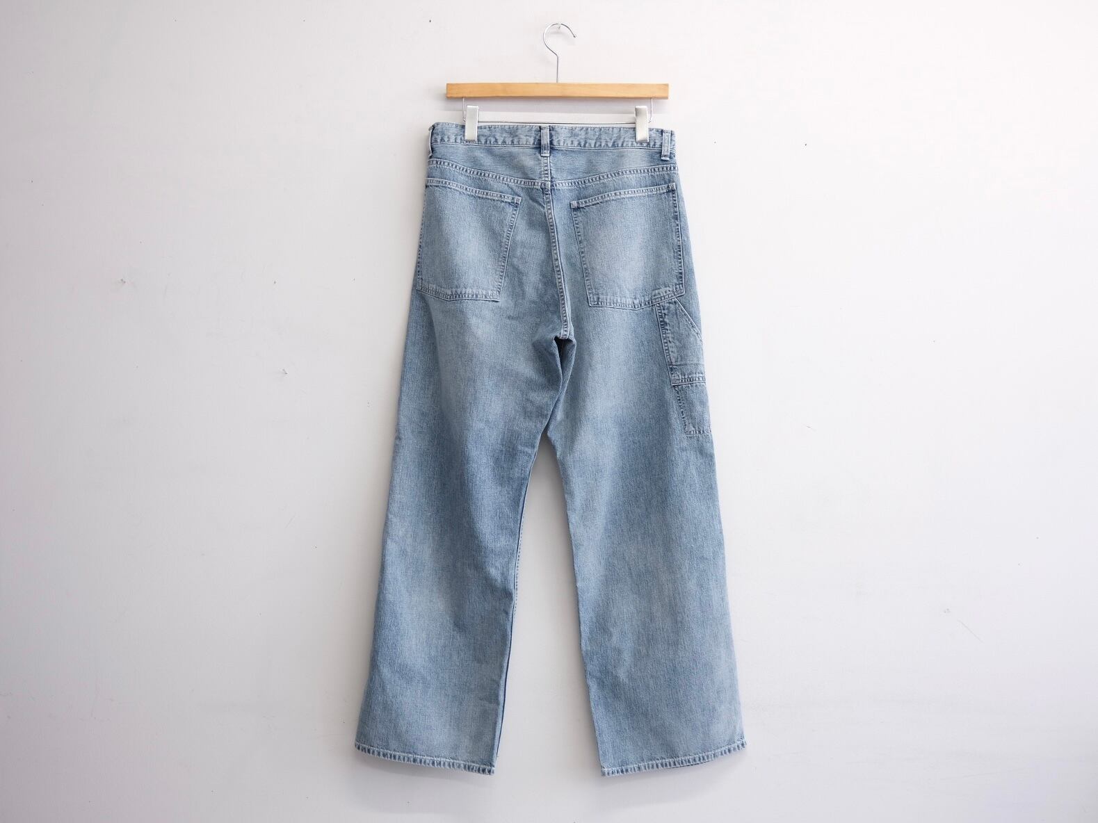 フェイク仕様のツールポケット、ストンと落ちる綺麗なストレートシルエットが特徴のペインターパンツ。所謂ビンテージの色落ちとはまた違ったムードを目指した加工は、職人の手作業と様々な洗い加工をいくつも組み合わながら、奥行きのあるフェードや色彩の濃淡を細かく調整して仕上げています。今季はさらに全体の色落ちを強くし、アタリ感やフェード感を強く反映させてアップデートしています。