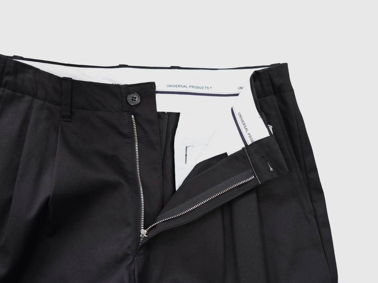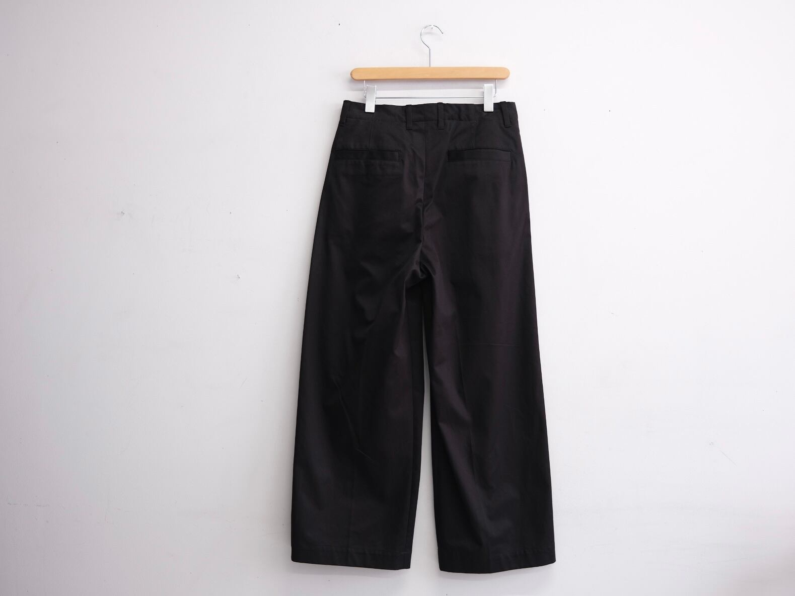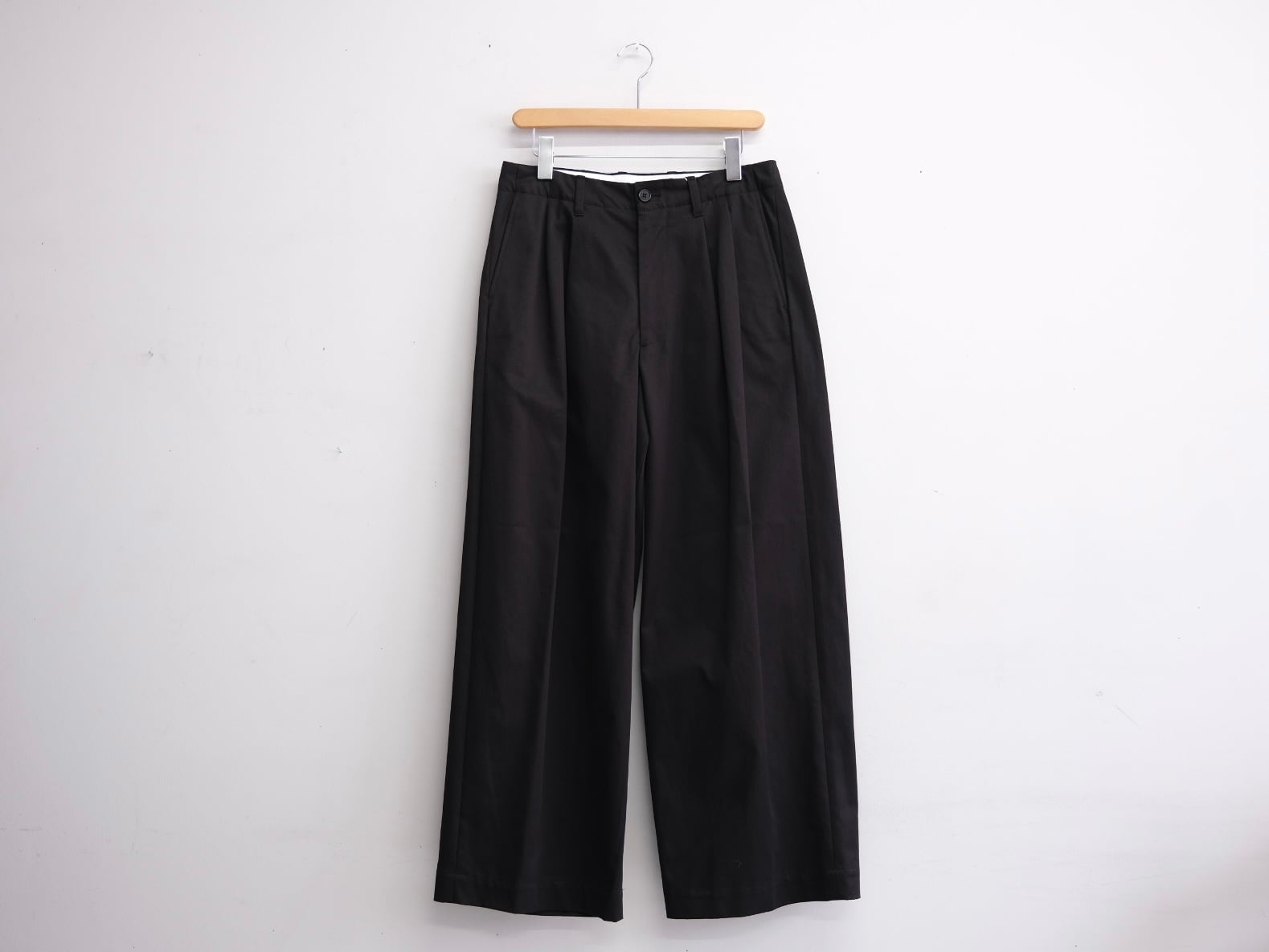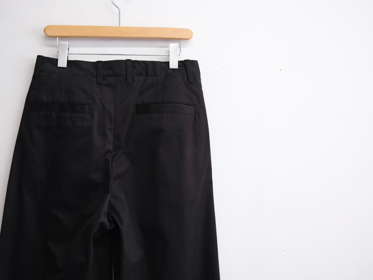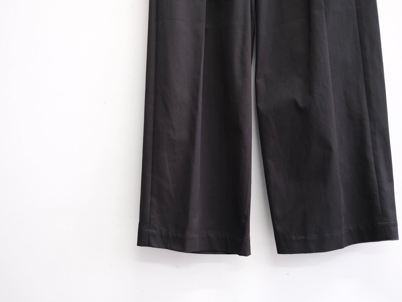 定番のノータックチノと同じ素材を使用した、新型の2タックワイドパンツ。