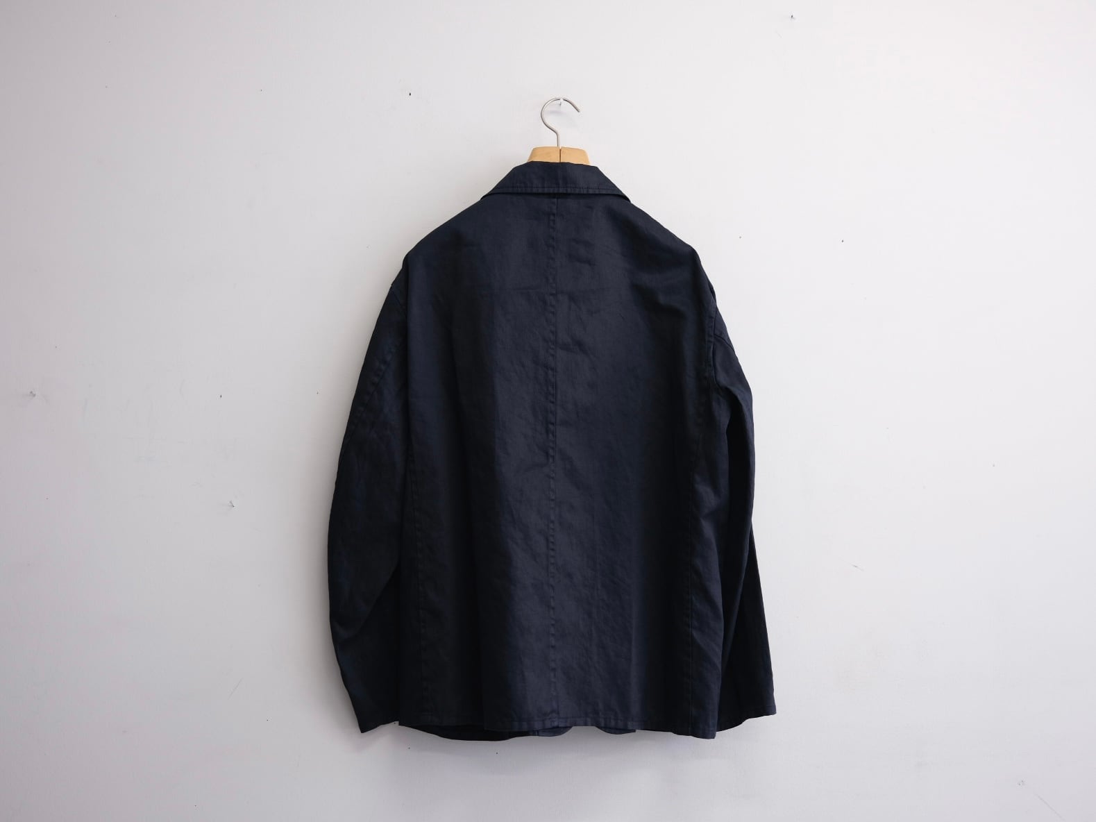 コットンツイルに特殊な加工をしてハリを出した生地を使用し、製品染で古着のような風合いのワークジャケットを作成しました。