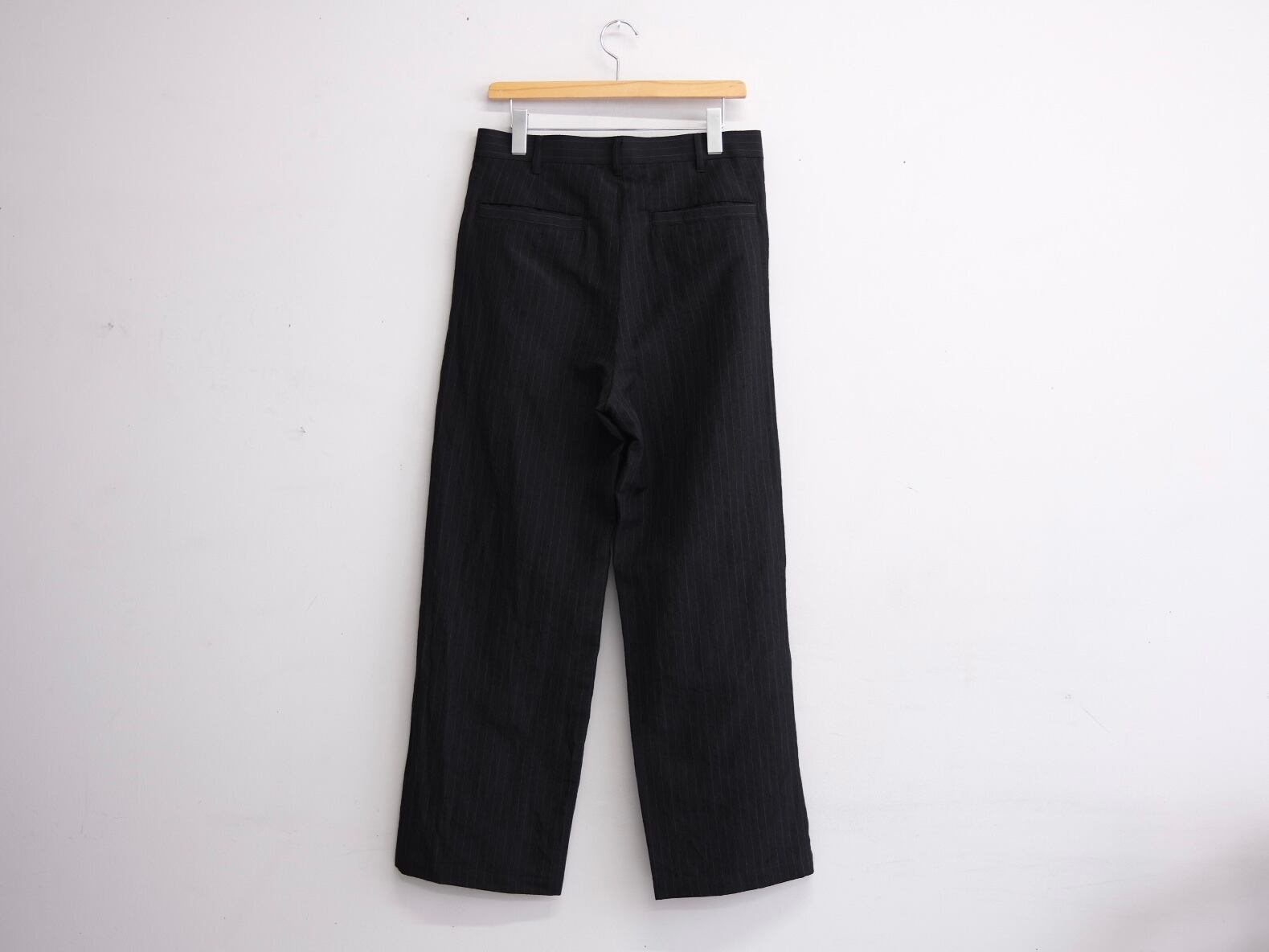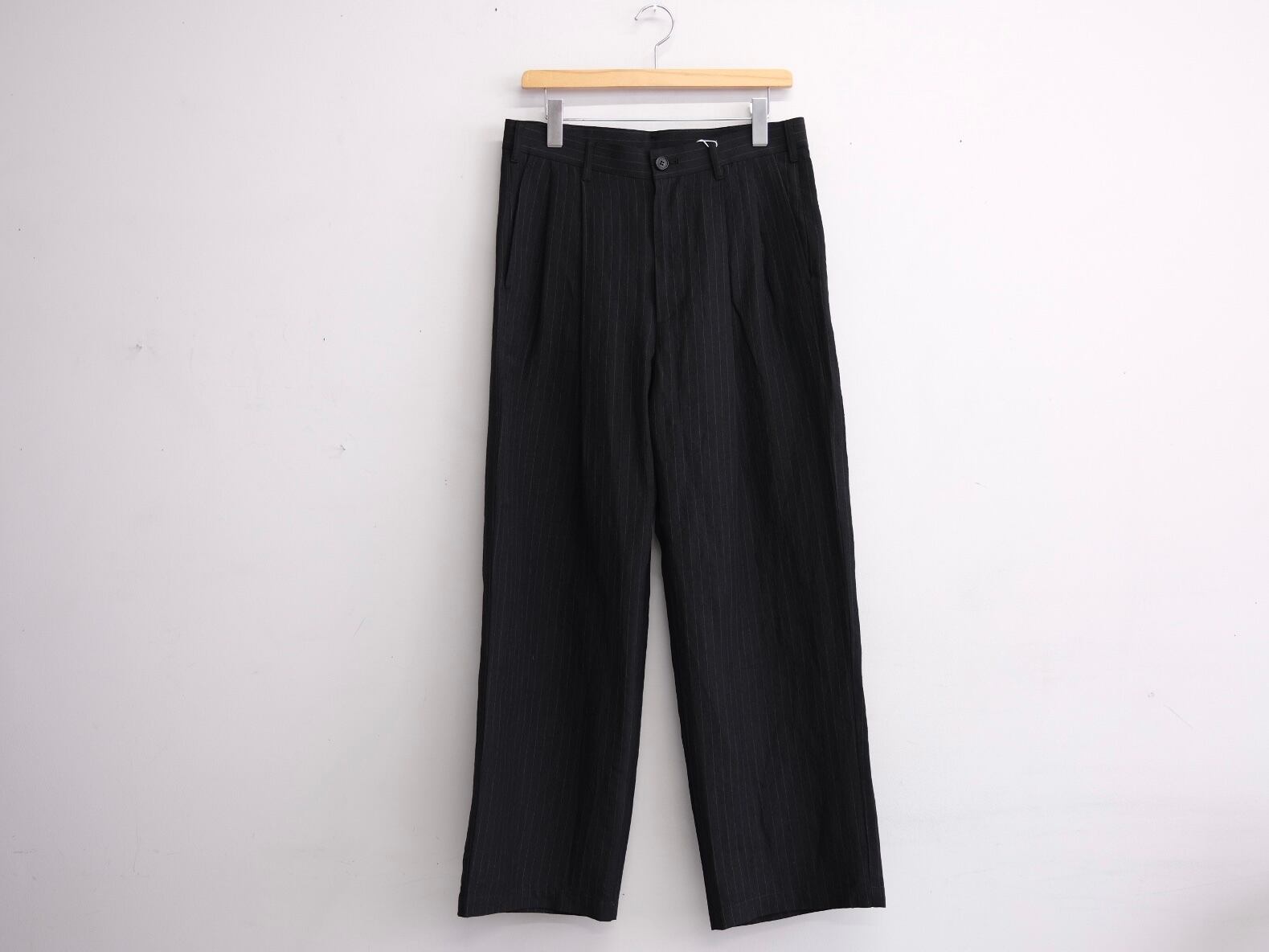 非常に珍しいウール×リネンの交織ウェザークロスを使用して2タックのトラウザーを作成しました。