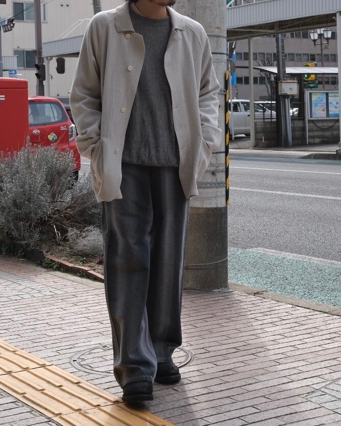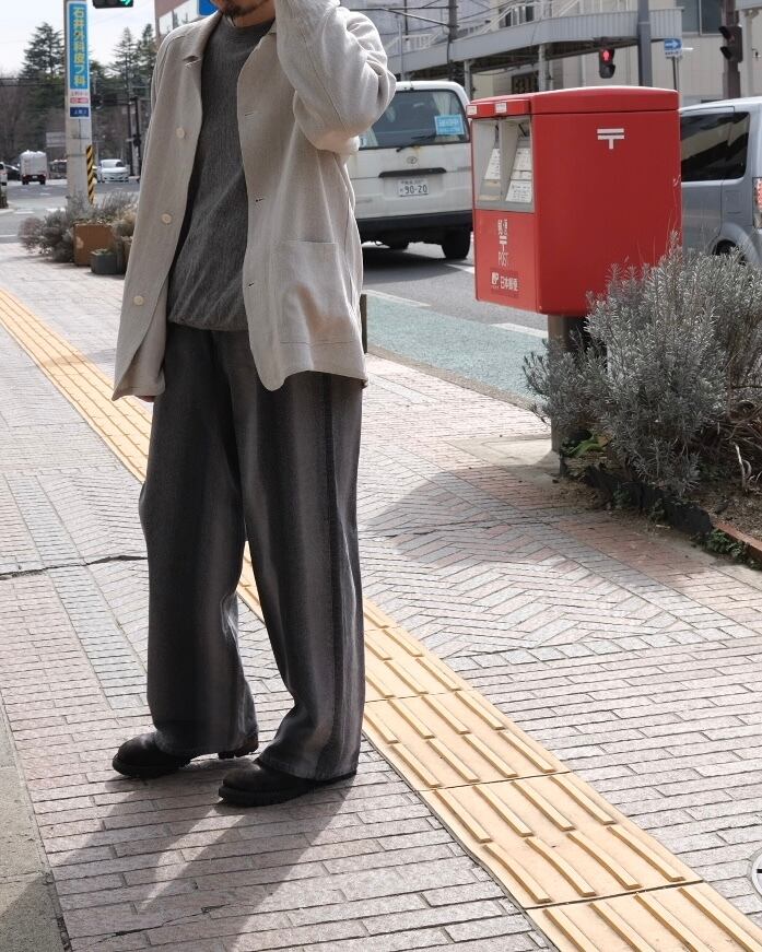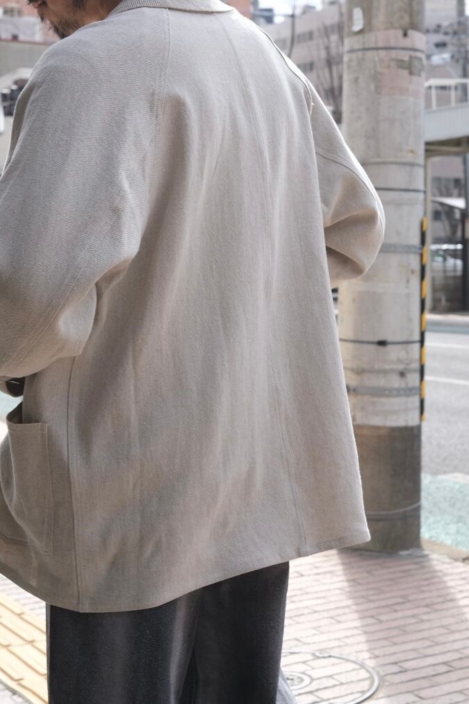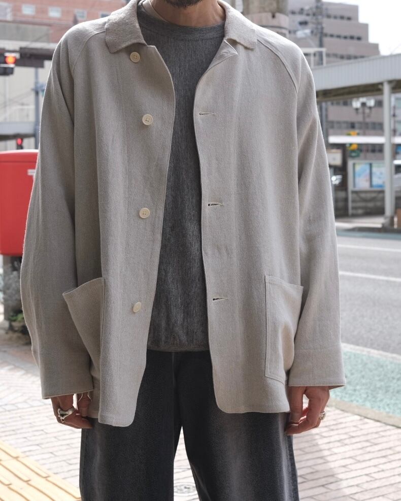 リネンの紡績過程で生まれる落ちわたを糸にし、強撚に仕上げたホップサック生地のシリーズ。表情豊かなリネン素材を再解釈した独特の風合いが魅力で、清涼感としっとりとした肌触りを両立しています。