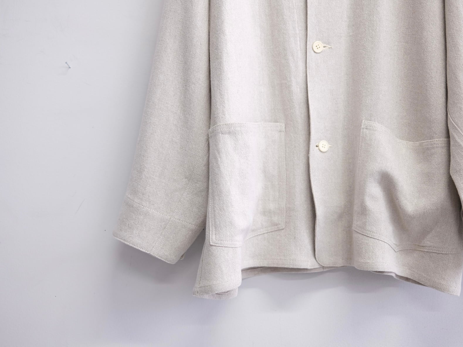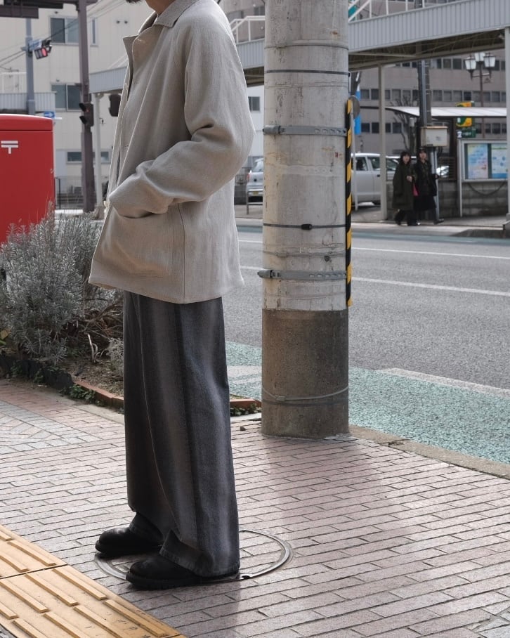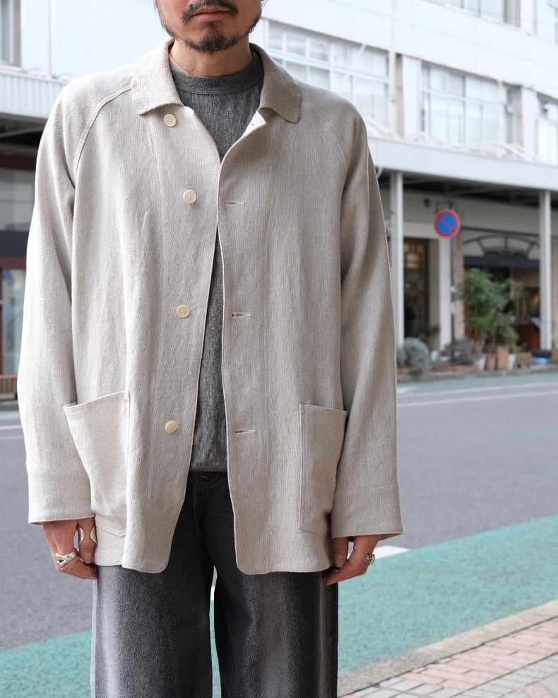 リネンの紡績過程で生まれる落ちわたを糸にし、強撚に仕上げたホップサック生地のシリーズ。表情豊かなリネン素材を再解釈した独特の風合いが魅力で、清涼感としっとりとした肌触りを両立しています。